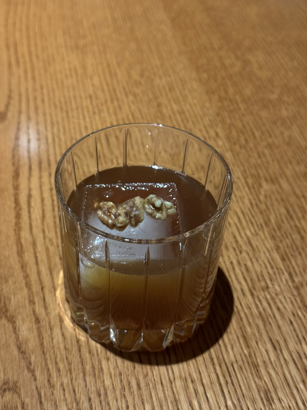 칵테일을 한 잔만 더 마시면 행복해질 것 같아서 또 한 잔을 시켰다. 메이커스 마크와 시나몬, 그리고 기타 재료를 섞어 만든 칵테일이었다. 시나몬 향 덕분인가. 크리스마스 같은 맛이 났다. 호두는 메이플 시럽에 절인 호두.