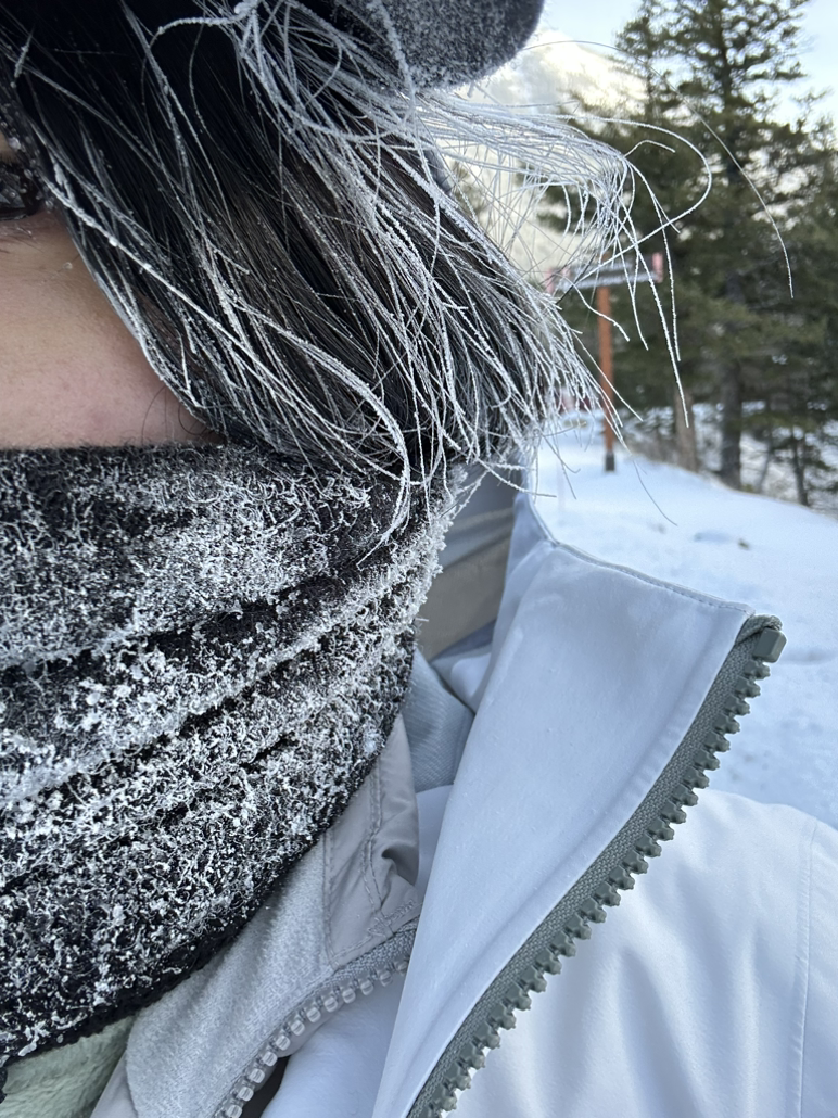 돌아가는 길에 찍은 셀카... 분명 몸은 안 추웠지만 머리카락과 목도리는 추워하는 상황. 앞으로 영하 20도에서는 머리카락이 안 드러나게 비니를 쓰고 다녀야겠다는 다짐. 추울 때는 안경에 김이 너무 많이 서려서 그냥 벗고 다닌다.