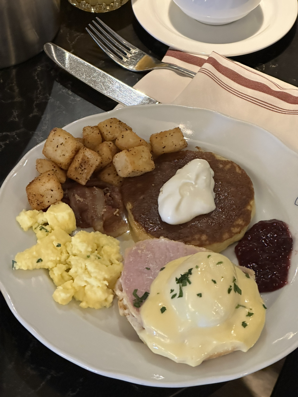 요가를 끝내고 조식을 먹는데 대기 중인 사람이 많았다. 살면서 조식 대기를 이렇게 오래 하는 건 처음이군. 듣던 대로 밴프 페어몬트 호텔이 조금 더 먹을 게 많았다. 특히 저 감자튀김은 어디서도 맛볼 수 없는 바삭함을 갖추고 있어 좋았다. 에그 베네딕트는 빵과 햄이 그다지 맛이 없어서 뭔가 아쉬운 맛. 팬케이크는 괜찮았다. 잼과 콩포트가 뭐가 다른 걸까 싶었는데 과수는 알 것 같았다. 물어보니 과연 과수는 알고 있었다. 역시 무과수 최고!