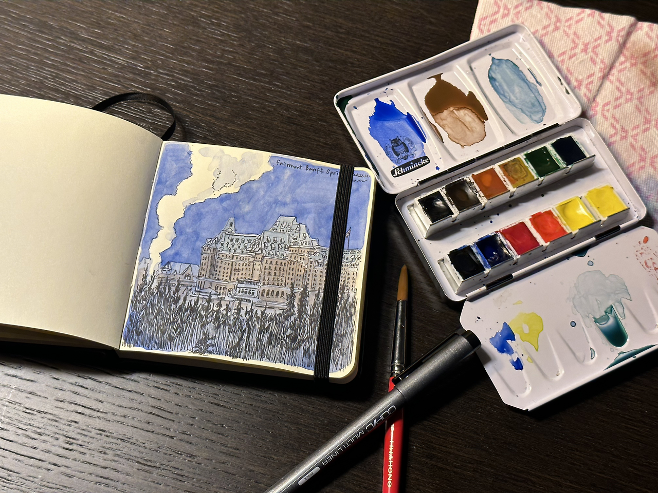 숙소로 돌아와서 몸을 데울 겸 쉬면서 그림을 그렸다. 이 장면을 마침 그리고 싶었지. 다 그리고 무척 흡족했다.