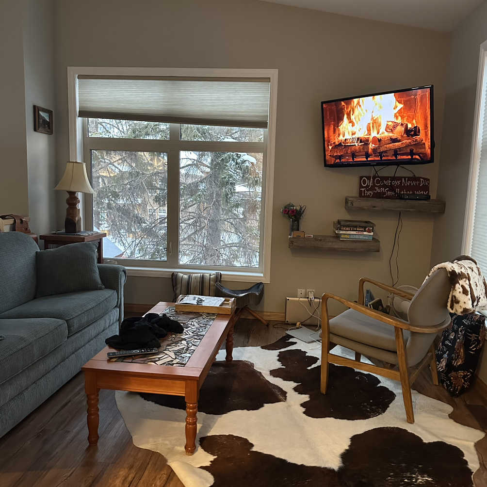 켜면 2도는 따뜻해지는 기분이 드는 벽난로. 나는 이곳에서 늘 11시 30분 쯤에 일기를 쓰고 12시에 잠든 다음 8시에 깬다.