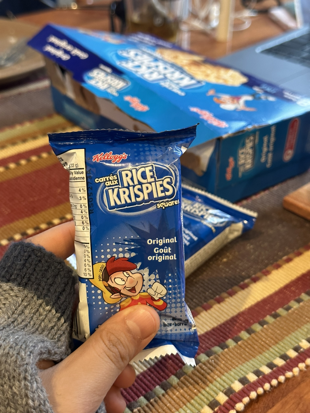 간식으로 라이스 크리스피를 먹었다. 흰 우유와 잘 어울리는 맛. 생각보다 크기가 안 커서 다행이다. 컸으면 정말 칼로리가 더 높았겠지...