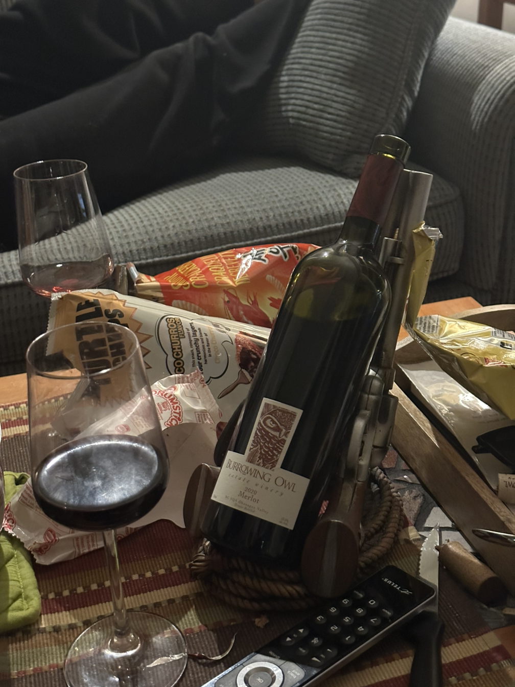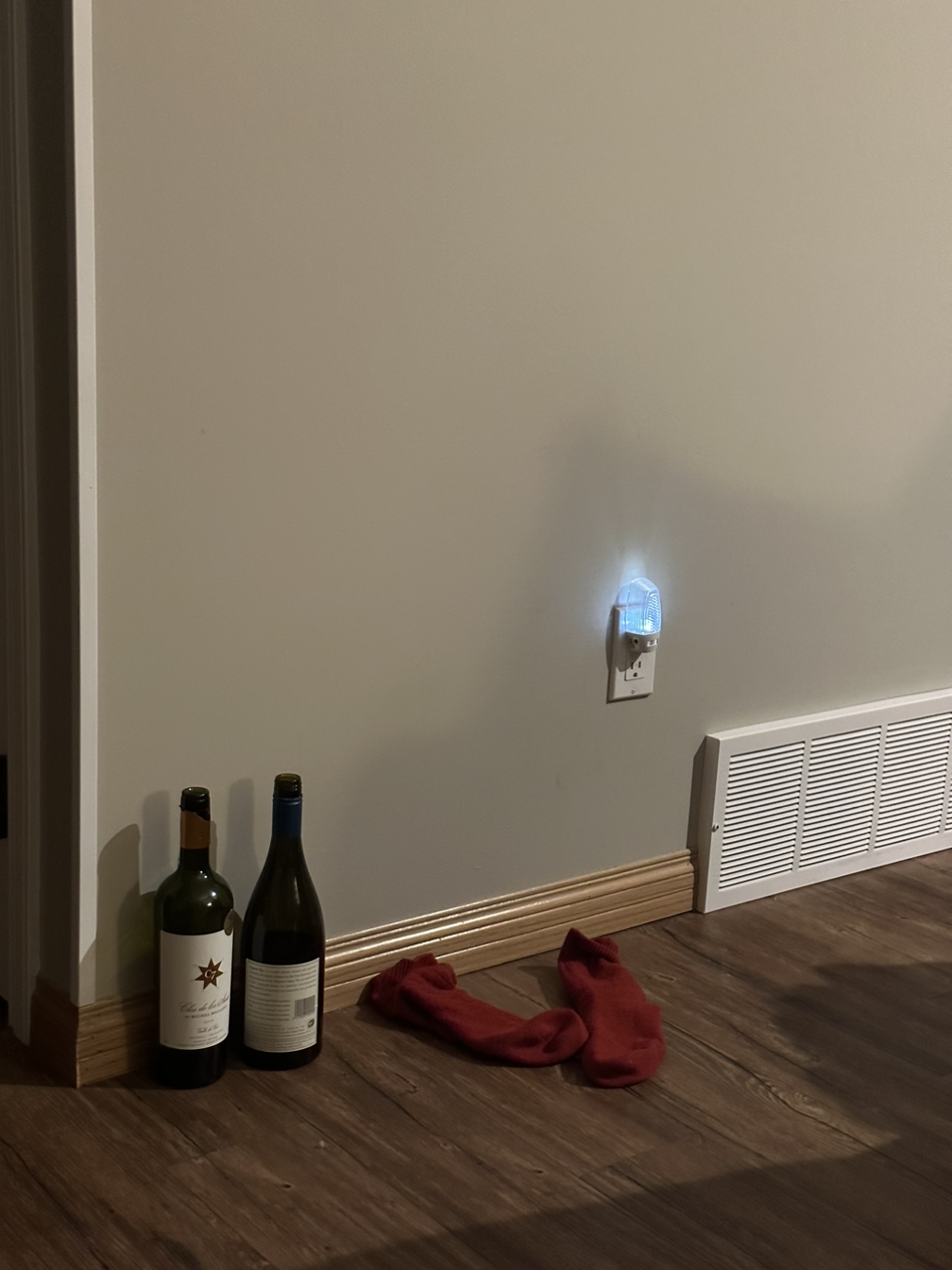 이 아까운 와인. 이만큼이나 남았다. 내가 갑자기 졸려서 자자고 했다고 한다. 정신을 차려보니 침대에 있었다. 저 멋진 와인 거치대를 꺼낸 건 기억이 나는데 어쩌다 잠들었을까.