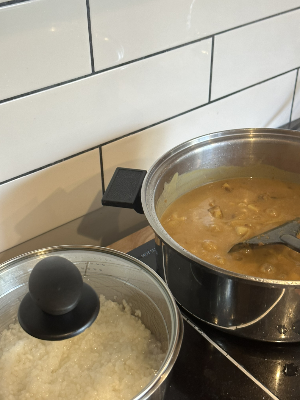 계란과 곁들이면 꿀맛! 나는 계란을 정말 좋아한다. 밥은 리조또 쌀로 냄비밥을 했는데 카레랑 먹으니 조합이 좋았다.
