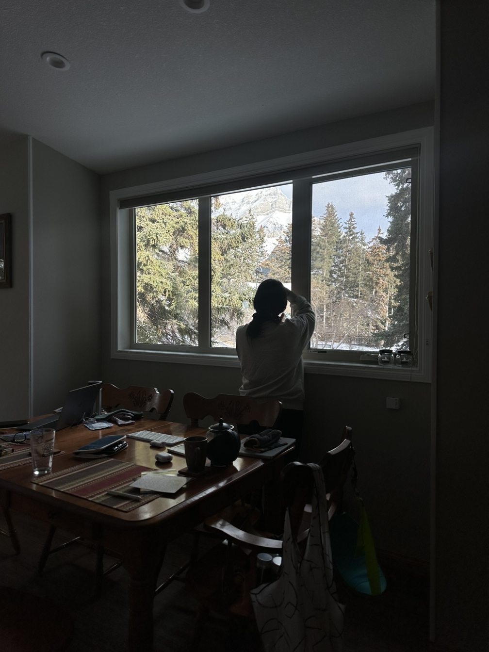 1시간 남짓 올라가면 밴프 국립공원이 보인다. 보면서도 실감이 나지 않았다. 여름엔 강이 보이겠지? 그동안 유럽에서 본 건 대자연이 아니었군.