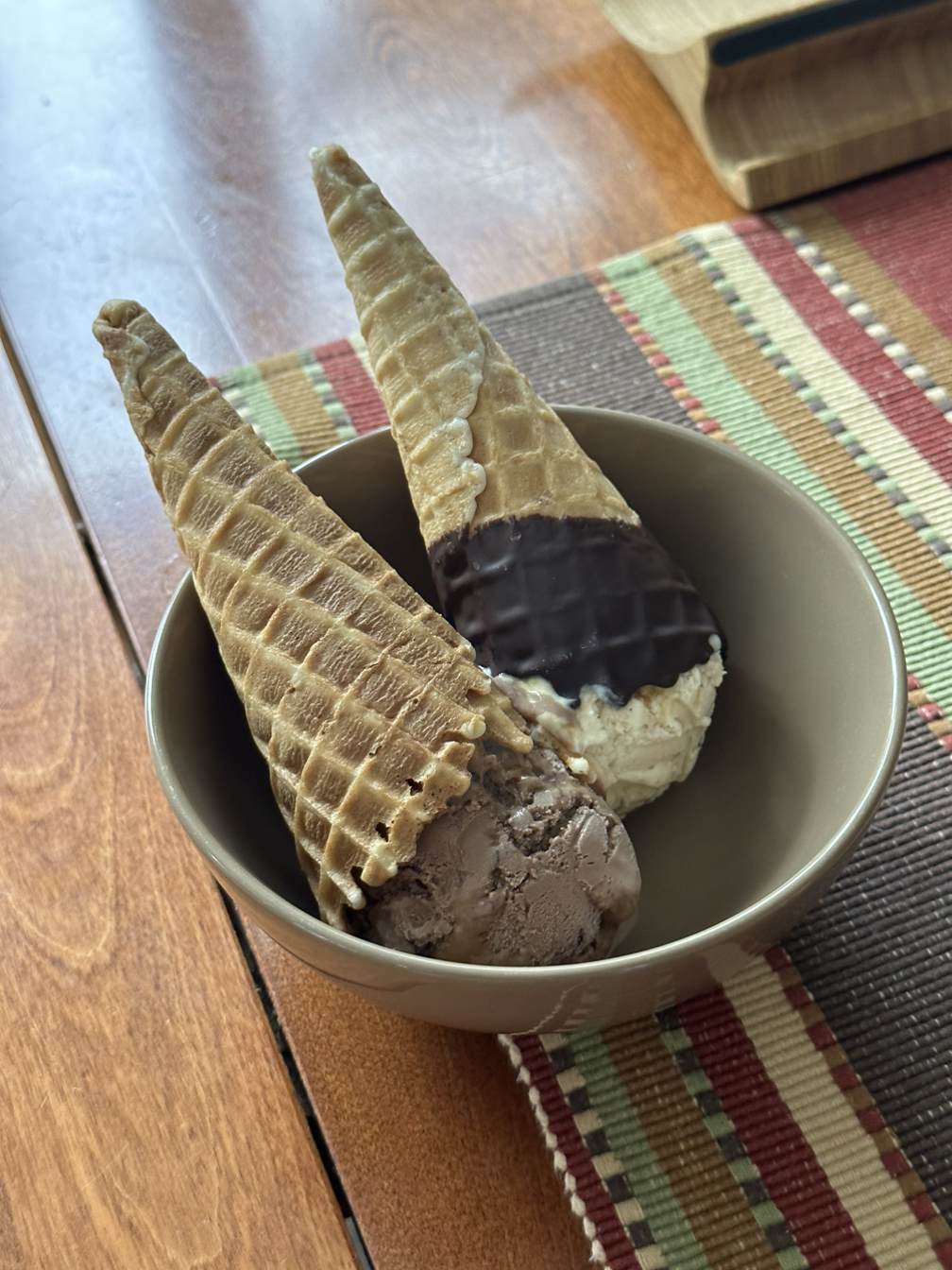갑자기 온 과수의 문자. 연아, 꼭 집에 있어! 하면서 귀여운 아이스크림을 사 왔다. 밴프 떠나기 전에 먹어보고 싶었는데 마음이 통했군. 무척 고마워, 과수야.