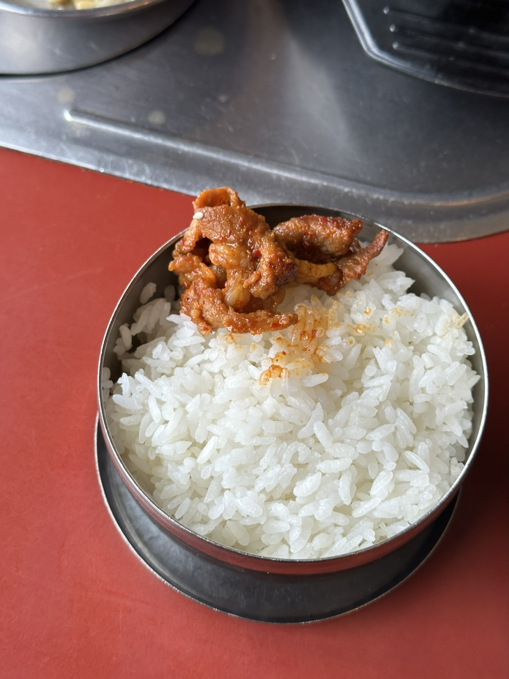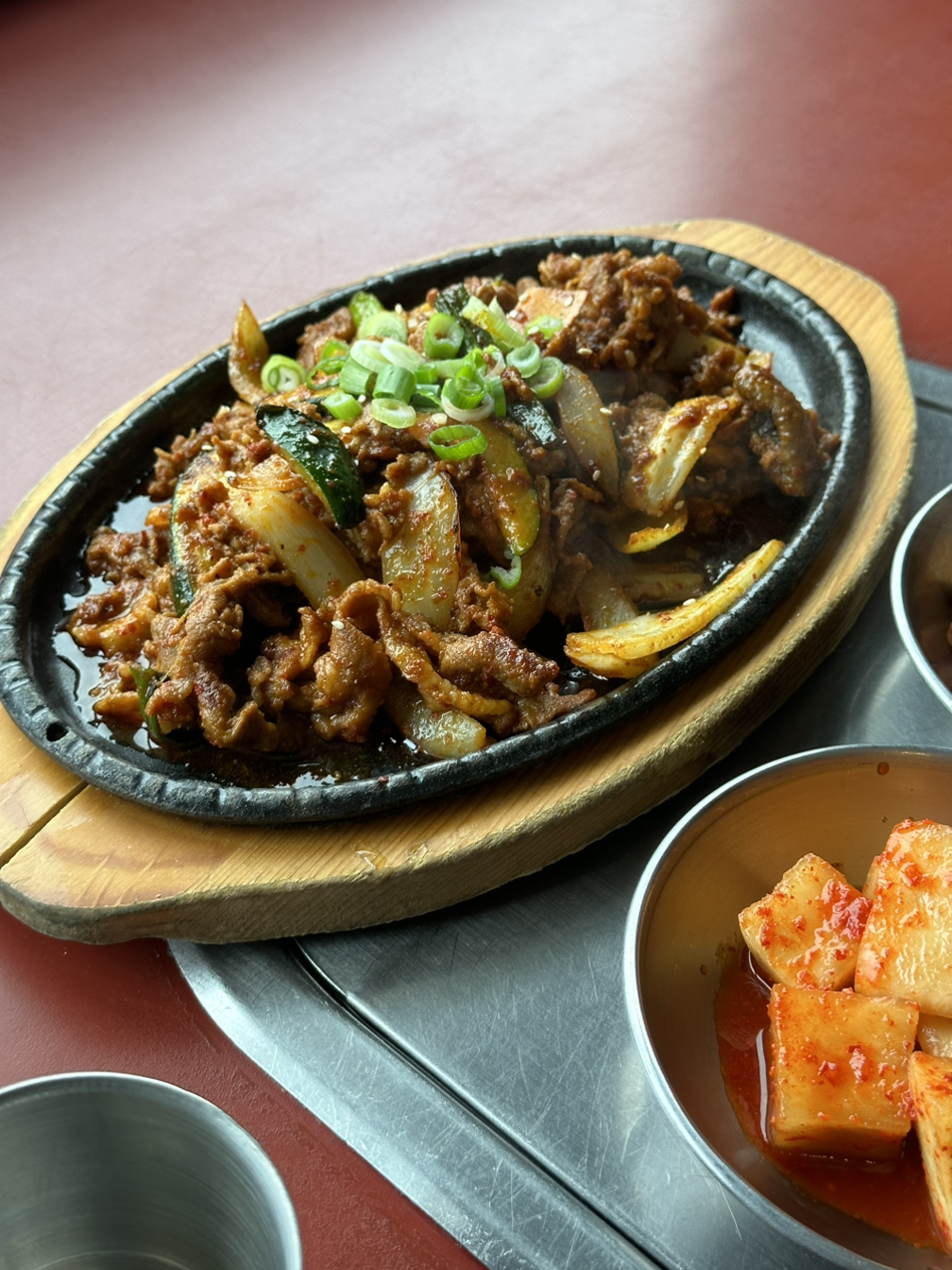 신기하게 외국에서 먹는 제육볶음은 3배쯤 더 맛있다. 우리 동네에도 제육볶음 전문 식당이 있는데 그곳이 떠오른 맛. 철판도 정겨운 모양이다. 밑반찬으로 김치와 깍두기, 미역줄기, 숙주나물이 나왔는데 전부 맛있었다.