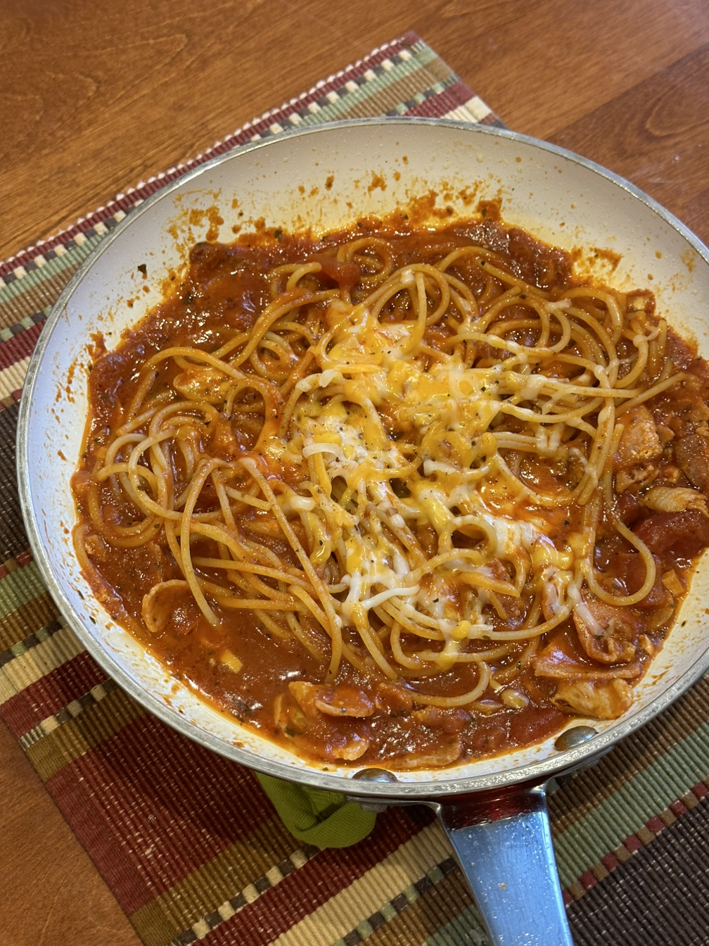 토마토 소스를 넣은 파스타. 치즈는 역시 다다익선이다.
