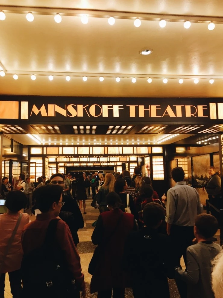 극장은 딱 다른 뮤지컬 극장만 했다. 나는 스무 번째 줄 정도에 앉았는데 보기에 전혀 무리가 없었다. 한쪽에는 딸과 함께 보러 왔으나 혼자 자리에 앉게 되신 백발의 할머니가 앉으셨고 다른 한쪽에는 이탈리아 가족이 앉았다. 극장으로 올라가는 길에 엘리베이터를 타고 가는데 어떤 할머니가 내 팔을 너무나 다정하게 잡으며 '투 매니 피플! 투 매니 피플!' 하셨는데... 알고 보니 이 할머니는 내가 같이 온 딸인 줄 알고(나중에 보니 뒷모습이 정말 똑같았음) 내 팔을 부여잡으신 것. 너무나 미안해하시길래 괜찮다며 웃고 넘겼는데 알고 보니 내 왼쪽에 앉는 관객이었다. 오른쪽에 앉은 이탈리아 엄마는 극 중 내내 말 오지게 안 듣는 막내아들에게 영어 대사를 실시간으로 통역해주다가(진짜 경악했음) 할머니에게 호되게 옮기고 나서 복도 끝으로 자리를 옮겼다.