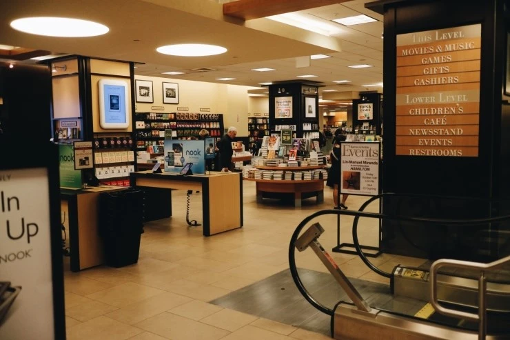 20분 정도를 걸었을까... 드디어 반스 앤 노블 서점이 나왔다. 걸어왔던 거리가 꽤 한적했던 것에 비해 서점 앞은 번화가라는 느낌이 강했다. 우리나라의 많은 서점들이 그러듯 렉싱턴 근처 반스 앤 노블도 지하 서점이었다. free wifi라는 글씨가 대문짝만 하게 쓰여있었지만 전 데이터 무제한... 심카드를 사 왔답니다... 건물 앞마다 무섭게 자리를 지키고 있던 가드 요원과 눈인사를 가볍게 나누고 서점으로 내려갔다.