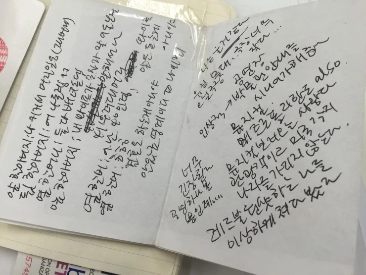 까먹을까 봐 가방에서 종이를 꺼내 이 대화를 빠르게 적었다. 그러자 옆에 앉은 할머니가 물끄러미 내 종이를 바라보며... 어느 나라 언어냐 어디서 왔냐 친구들은 어딨냐 이것저것 물었다. 산타 모니카에서 왔다는 할머니는 내가 혼자 왔다는 말을 하자 눈이 엄청나게 커지며 '여보 얘좀 봐요 뉴욕에 혼자 왔대 ㅠㅠ 아이고 용감해라ㅠㅠ' 하고 여러 번 토닥거려주었다.