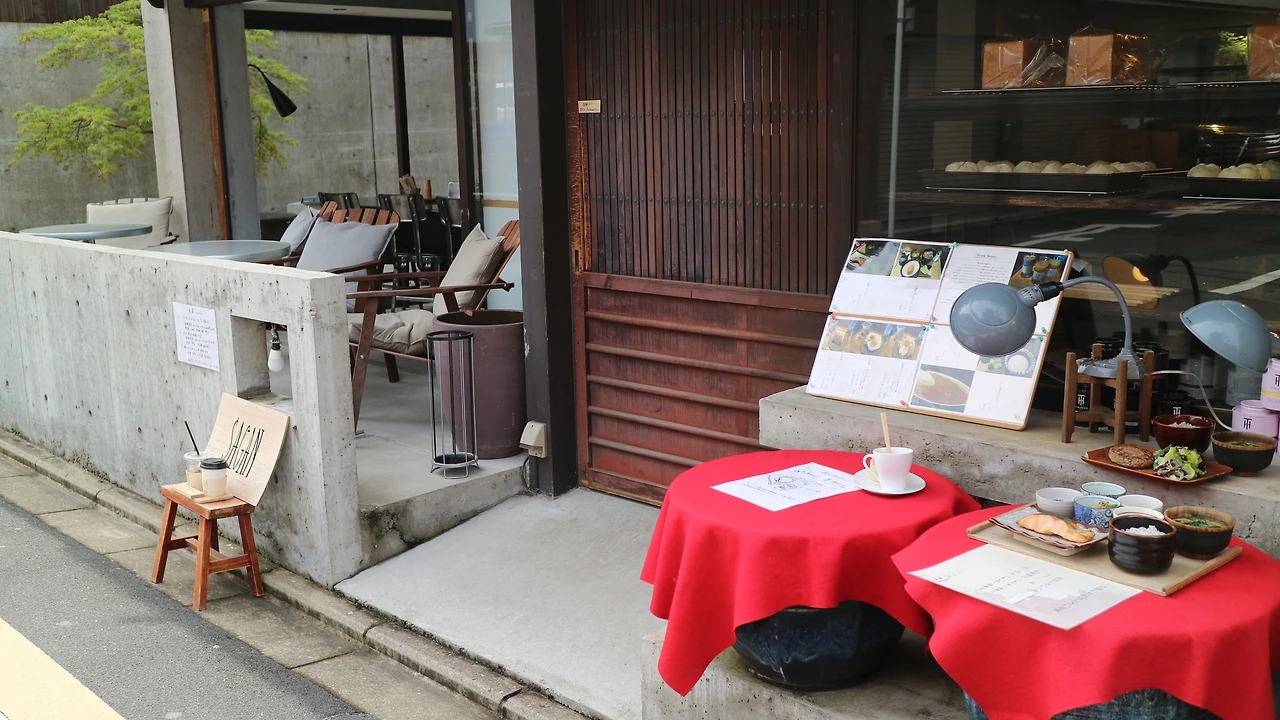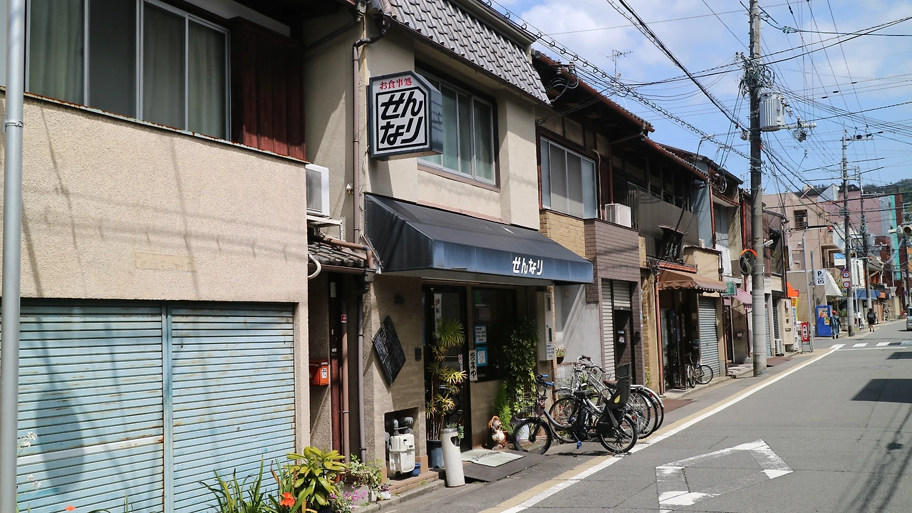은각사로 가는 버스를 타기 위해서는 숙소에서 나와 10분 정도 얕은 언덕배기 골목길을 올라가야 했다. 늘 그렇듯 골목골목에는 신사가 자리 잡았고 아침에는 브런치, 점심에는 가이세키를 파는 집도 있었다. 몹시 배가 고팠으나 참기로 했다.
