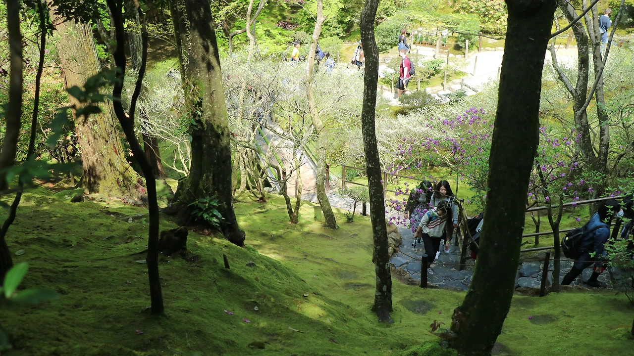 학생들을 따라 쫄쫄 걸음을 옮기니 어느새 은각사가 나타났다. (올라가는 길은 별로 안 멀다. 사람은 엄청 많은데 대부분이 단체 관람이라 그런지 개인 표도 금방 살 수 있다)