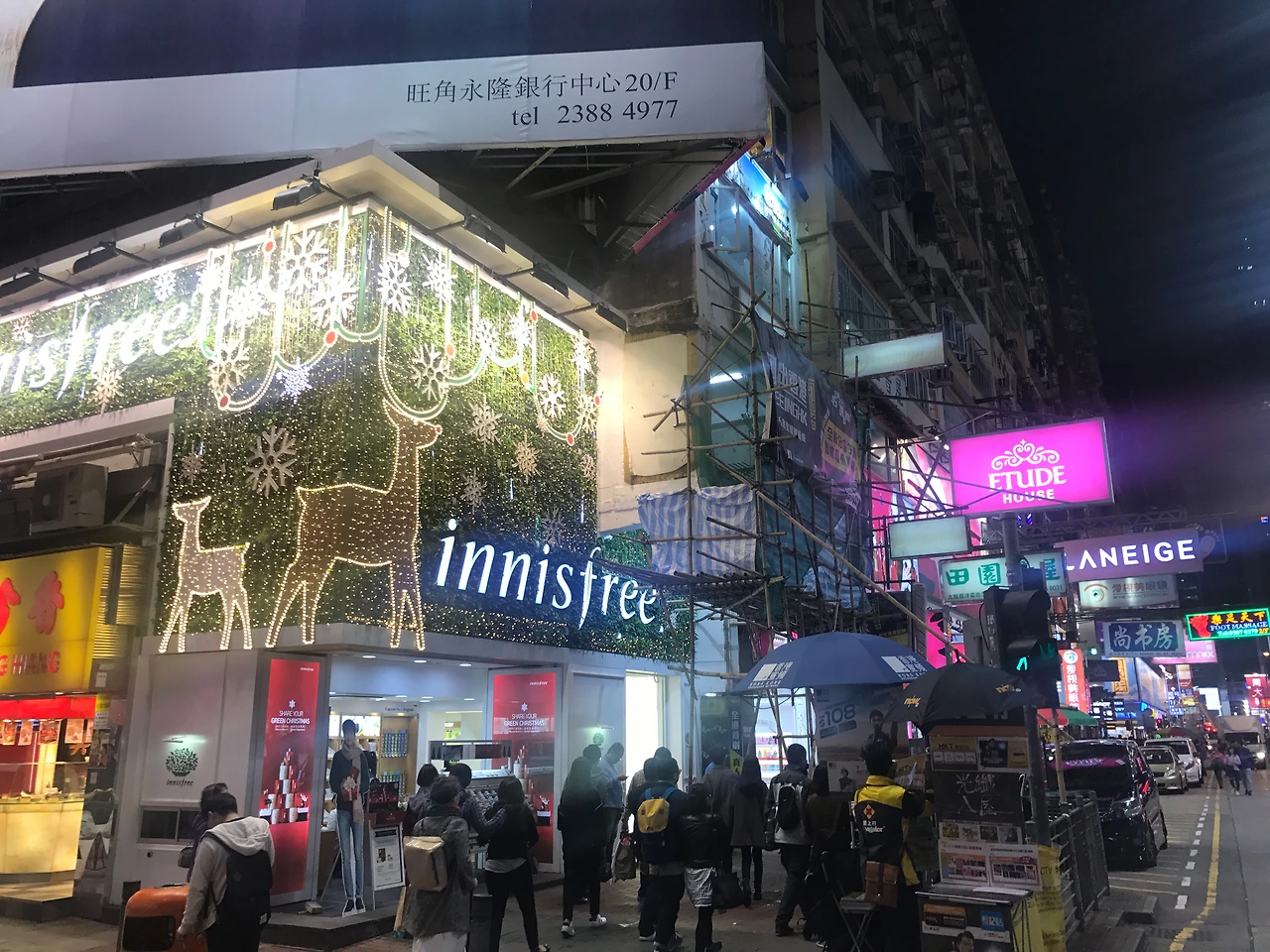 한국 화장품 골목 급. 체감으로는 다른 브랜드들에 비해 이니스프리가 강세라는 것을 느낌. 왜냐면 정말 말그대로 <여기저기> 다 있음. 중국 진출 3년만에(4월) 200개 호 달성했다던데 진짜 여기저기 있고 사람들도 늘 바글바글하다. 이런 길거리뿐만 아니라 홍콩 면세점에도 곳곳 입점해있다. 관련기사도 많음.