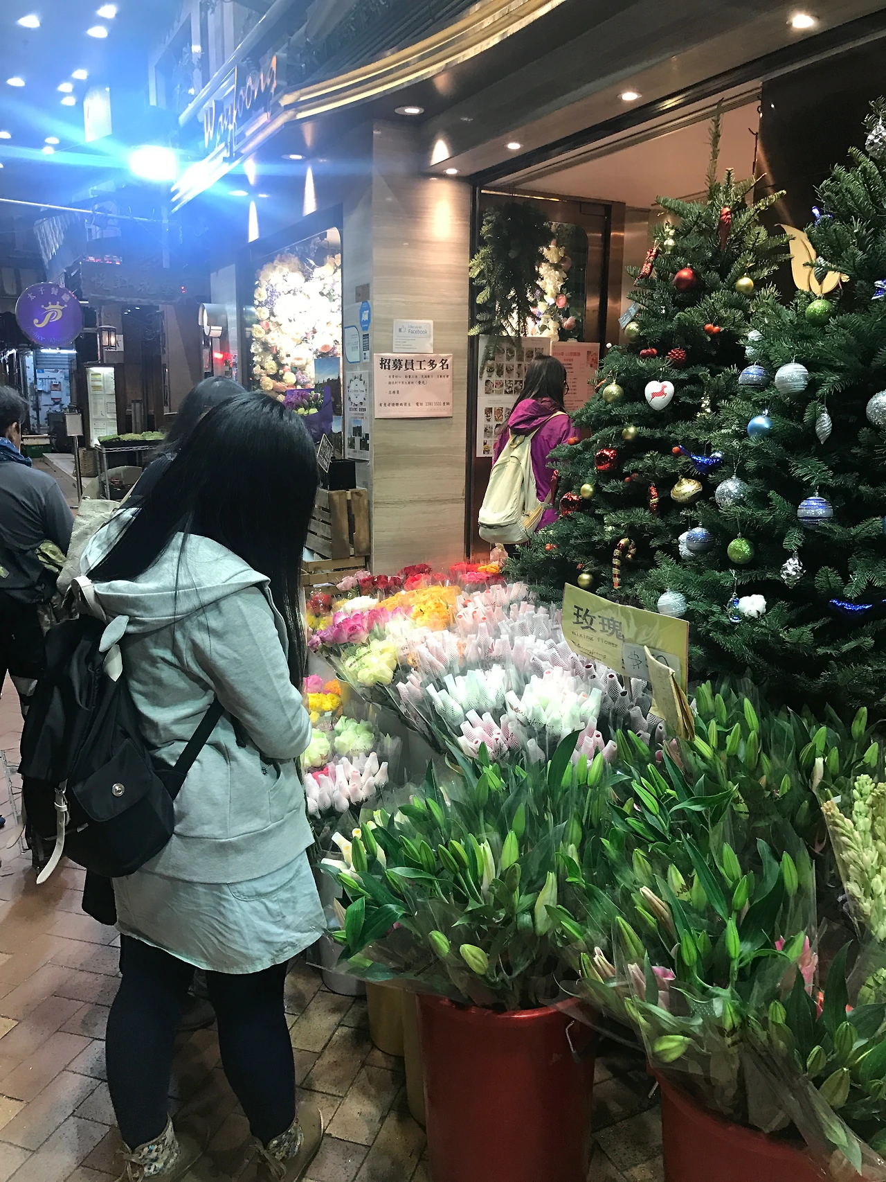 블로그를 여기저기 뒤져봤는데 홍콩사람들은 풍수를 굉장히 중요하게 여기기 때문에, 복을 빌기 위해서는 금붕어를 키우고 선물용으로 화초나 화분을 많이 사용한다고. 축하할 일이 있을때도 꽃 선물이 흔하다고 한다. 그래서 그런지 종류별로 다양한 가게들이 즐비해있다. 크리스마스가 다가오고 있어서 그런지 트리 장식도 많았다.
