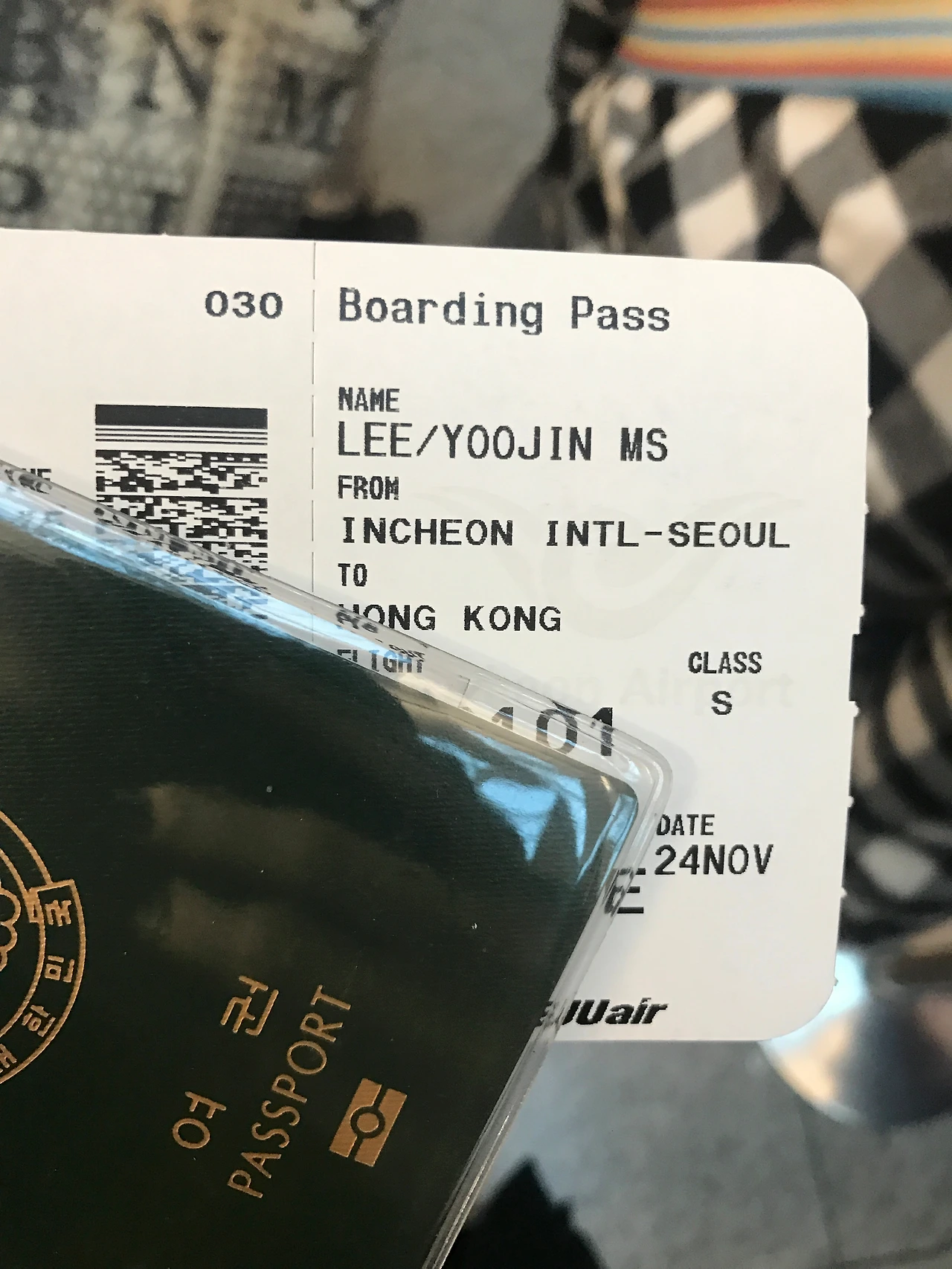나라는 무식쟁이는 홍콩까지 두세시간이면 갈 수 있지 않을까 예상했는데 생각보다 오래 걸려서 좀쑤셔 죽는 줄 알았다. 게다가 앞에 단체 한국인 관광객이 앉았는데 어찌나 시끄럽게 떠드시던지 두어번 정도 승무원에게 조용히좀 시켜줄 수 없냐고 부탁까지 했다... 아저씨들 그래도 말 참 안들으시데