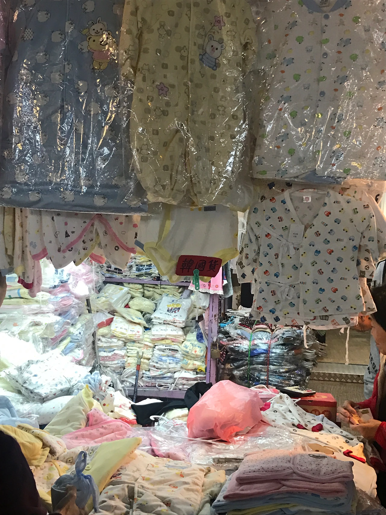 한국산, 한국제품이라고 붙어있는 의류가 꽤 많다. 특히 이 아기옷 가게는 저 팻말 말고도 한국산이라는 표지가 여기저기 붙어있었다.