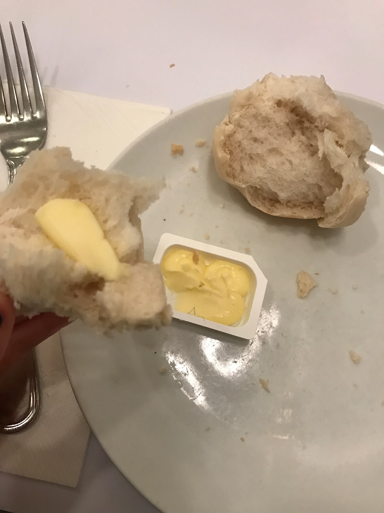 나는 고기류가 들어간 콘지(죽)을 시켰고, 북경에서 먹던 요우티아오를 다시 맛보고 싶은 마음에 식어빠진 요우티아오도 시켰다. 참고로 상기콘지의 죽은 정말 정말 맛있는데 요우티아오는 비추다. 차마 씹지 못할 정도의 맛없는 요우티아오가 나와 몹시 속상했다. 그러나 위에도 계속해서 언급했듯 당장 페리 타러 갈 시간이 빠듯했기 때문에 요우티아오 불평은 접어두고 죽을 마시다시피 들이켰다. 입천장이 다 데었지만 정말 맛있었다.