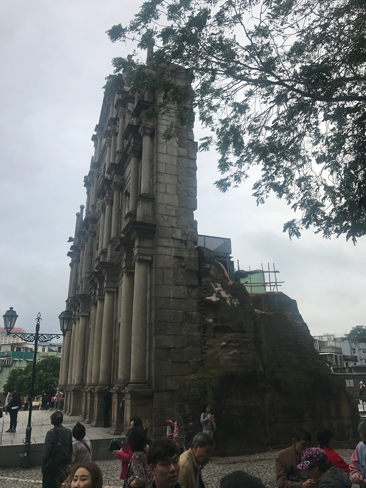 세인트폴 성당 유적은 1580년 완공되었는데, 극동지역에 최초로 설립되었던 서구식 대학 '성 바울 대학'의 일부였다고 한다. 1800년대에 화재로 인해 성당의 앞부분, 아니 성당의 앞 벽만 남아있는 모습이 되었다. 성당 전체가 남아있더라도 그 엄청난 규모 때문에 유명하긴 했겠지만, 아마 쓰러질 듯 쓰러지지 않는 위험한 모양새로 아슬아슬하게 남아있는 성벽이 관광지로서의 드라마틱한 효과를 가져오는 극대화시키는 게 아닐까.