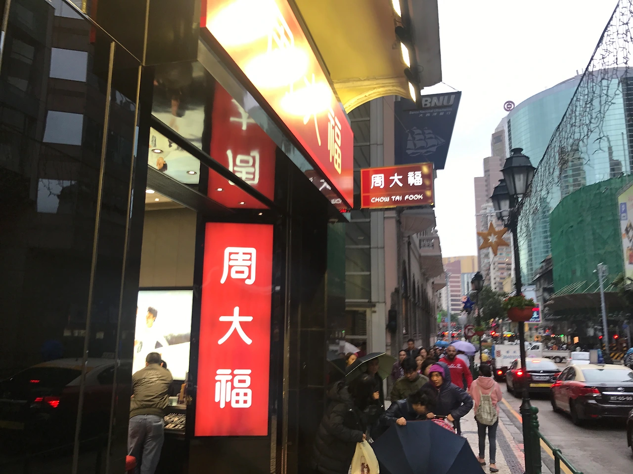중국과 홍콩을 핵심지역으로 두고 점차 세계 시장으로 진출하려는 목표를 갖고 있는데 중국인들이 가장 좋아하는 18K 제품뿐만 아니라 다이아몬드, 옥, 진주, 보석도 함께 취급한다. 쇼윈도에 옥 덩이가 턱턱 얹어져 있는데 가게마다 중국인들도 바글바글했다.