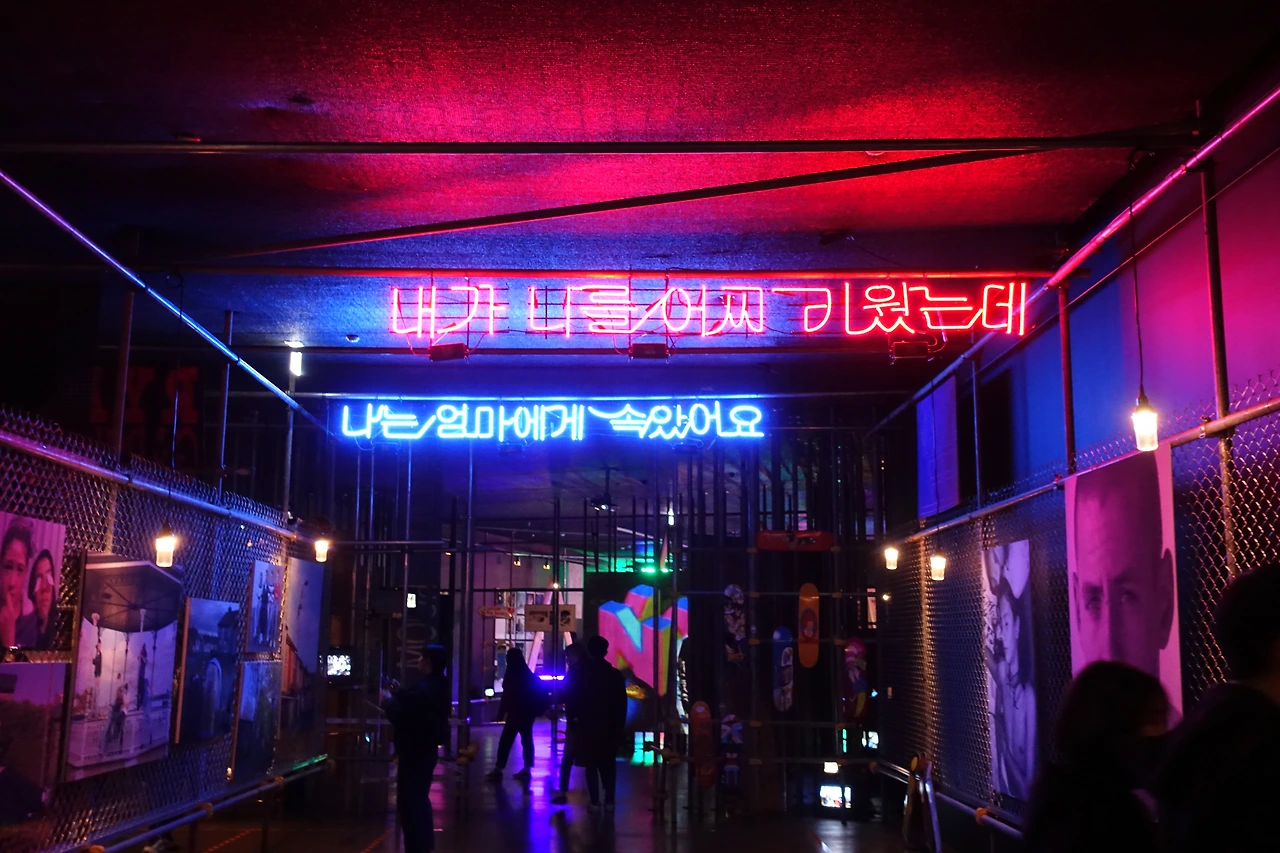 미술관 입구에서 계단을 내려가면 어두운 조명 속에 백스트리트(뒷거리)를 연상시키는 전시가 시작된다.