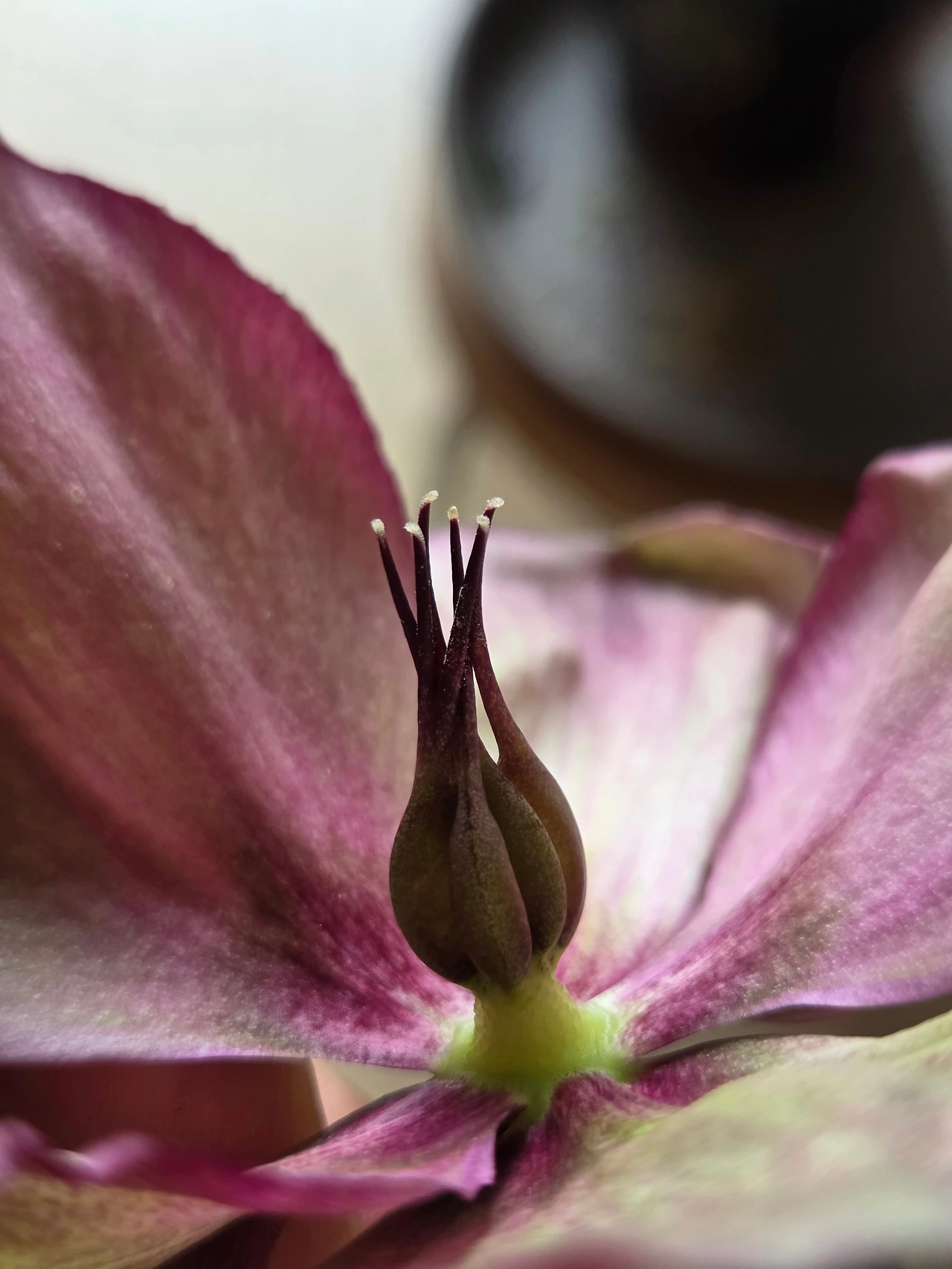 헬레보루스는 진한 깊이감 있는 색감에 고개를 살짝 숙여 피어 있는 모습이 매력적이다. 며칠째 가까이 두고 들여다보니 볼수록 더 빠져드는 색과 모양이었다. 겹겹이 쌓인 꽃받침, 두툼한 줄기가 쉽게 흔들리지 않을 것 같은 모습. 겨울 식물에게서 느껴지는 밀도가 묵직했다.