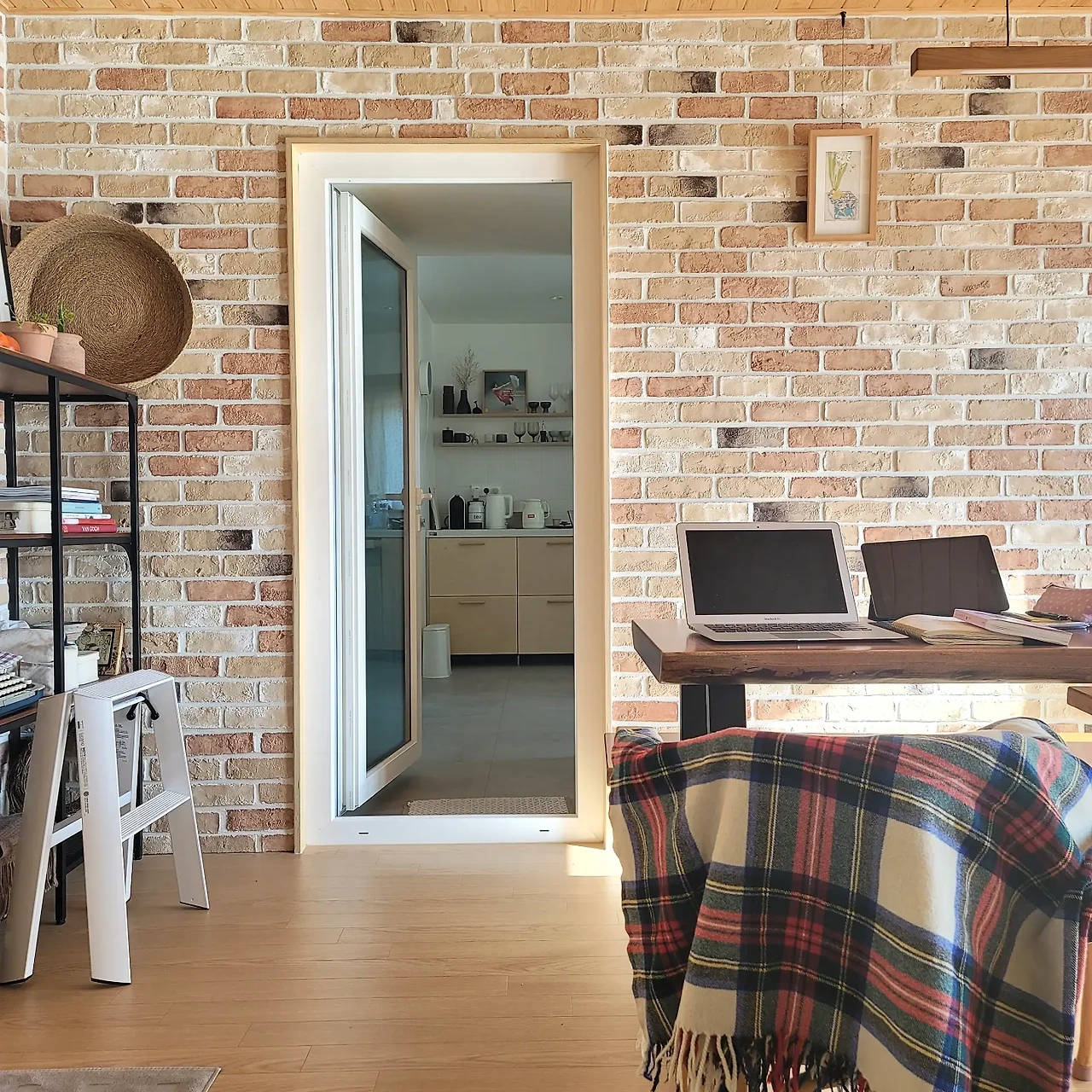 부모님과 집을 지을 때 가장 많이 고민했던 건 적당한 거리조절이다. 가까운 가족일수록 필요한 일이다. 다이닝룸은 두 집을 연결해 주기도 분리하는 역할을 한다. 두 집 사이에 있어 사생활 거리도 둘 수 있고 함께 모이는 자리이기도 한 곳. 4박 5일 우리가 셀프로 파벽돌을 붙여 엄청난 추억이 쌓인 공간이다. 우리 집의 마스코트 같은 공간. 천천히 이 공간의 이야기도 풀어봐야겠다.