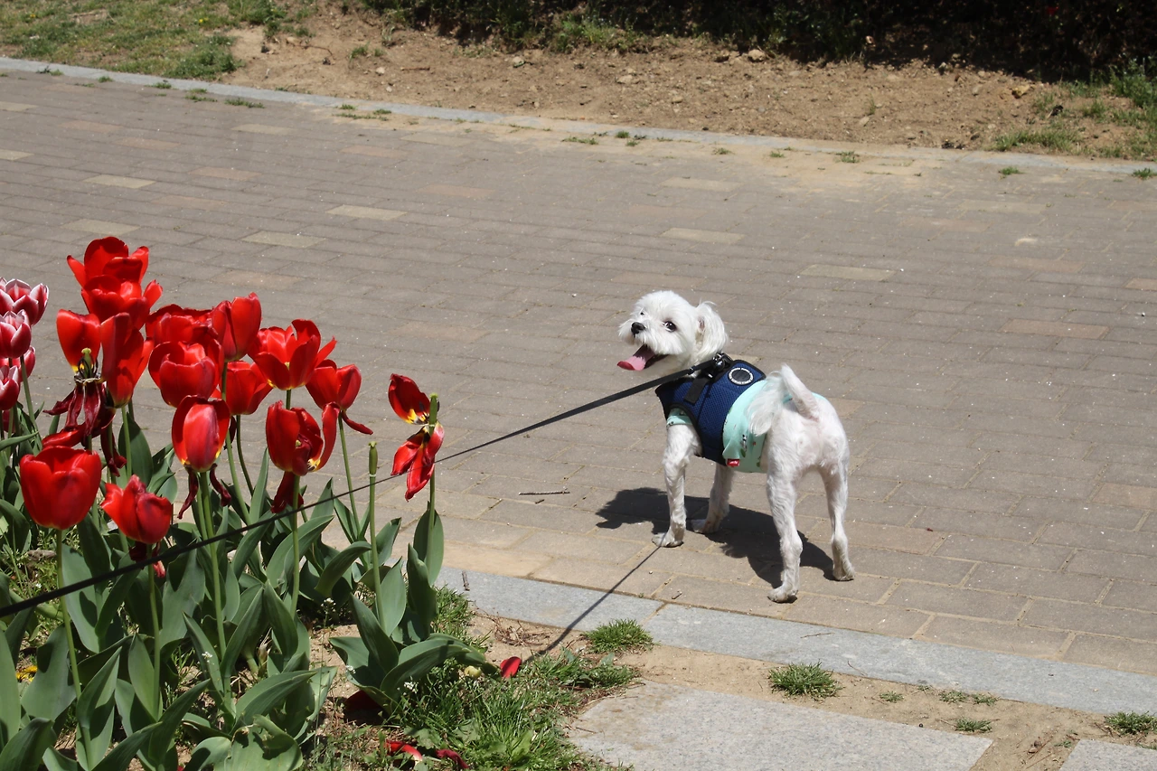 다리에 문제가 없음을 확인한 후, 매일 꾸준히 크리스를 데리고 나갔다. 인터넷에서 다른 반려인들에게 도움도 많이 청했다. 산책을 안좋아하는 개들도 의외로 제법 있다는 사실도 확인할 수 있었다. 간식을 가지고 나가기, 힘들어할 때는 잠깐 안아주기, 가고 싶어하는 곳을 그냥 지나치지 않기 같은 팁들도 많이 얻었다. 그렇게 크리스는 서서히 적응을 해가는 듯 했다. 집앞 공원을 꽤 신나게 달리기도 했다. 나도 크리스와 함께 하는 산책에 탄력이 붙어, 점점 나가는 거리와 시간을 늘렸다. 우리의 산책적응기는 그렇게 단기간에 성공하는 듯 했다.