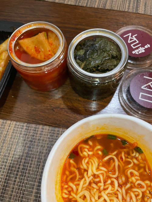 치과 옆에 아담한 독채로 사용하는 숙소였다. 숙소에서 보이는 곳에 빨래방도 있고, 2~3분 거리에 세븐일레븐도 있고, 슈퍼도 있고, 위치는 나쁘지 않았다. 저녁도 못먹고 쫄쫄 굶은 터라 짐을 대충 풀고, 근처 편의점에 가서 컵라면을 사가지고 왔다. 지인이 온라인으로 판매하고 있는 반찬을 보내줘서 함께 먹었다. 그때는 몰랐는데 그 반찬이 태국음식에 적응 못한 남편의 구세주가 될 예정이였다.