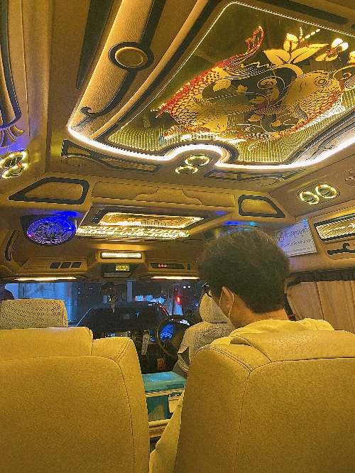 무려 30분이나 걸려 짐을 찾고, 택시를 타기 위해 1번 출구를 찾았다. 가던 방향으로 쭉 가면 나올거 같은데 남편은 굳이 어떤 부스에 서있는 남자에게 택시를 타야하는데 1번 출구가 어디있냐고 물어본다. 남자는 자기한테 말하면 택시 불러준다며 뭐라고 한참을 말했다. 얼마냐고 했더니 400바트를 부른다. 흐흐 정신 똑바로 차려야겠구만...시작부터 눈뜨고 코베일뻔했다. 우리는 200바트로 알고 왔는데... 단칼에 쏘뤼~~하고 다시 원래대로 1번 출구에 가서 무슨 전표같은걸 받고, 대충 눈치로 알아듣고 택시를 탔다. 아.. 그런데 태국 택시는 다 이런가? 택시따위가 이렇게 휘황찬란한 일인가? 이렇게 격하게 우릴 반겨준다고? ㅋㅋㅋ 나중에 알았지만, 그 택시만 유독 화려했다.