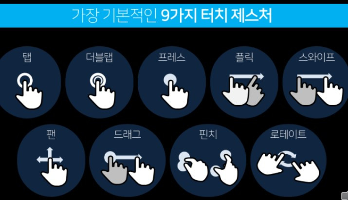 이 외에도 다양한 터치 제스처가 있는데 아래 이미지를 참고해주세요.