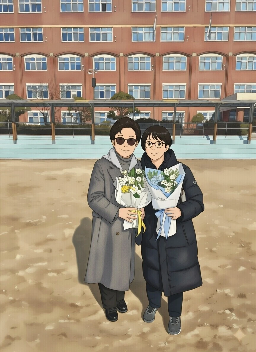 그다음 주, 학교에서도 아이의 졸업식이 있었다. 손주가 무사히 졸업하는 걸 축하해 주시겠다며 지방에서 친정엄마도 올라오셨다. 양손에 꽃다발을 들고 학교로 향하는 길에 우연히 만난 분이 말을 건넨다.