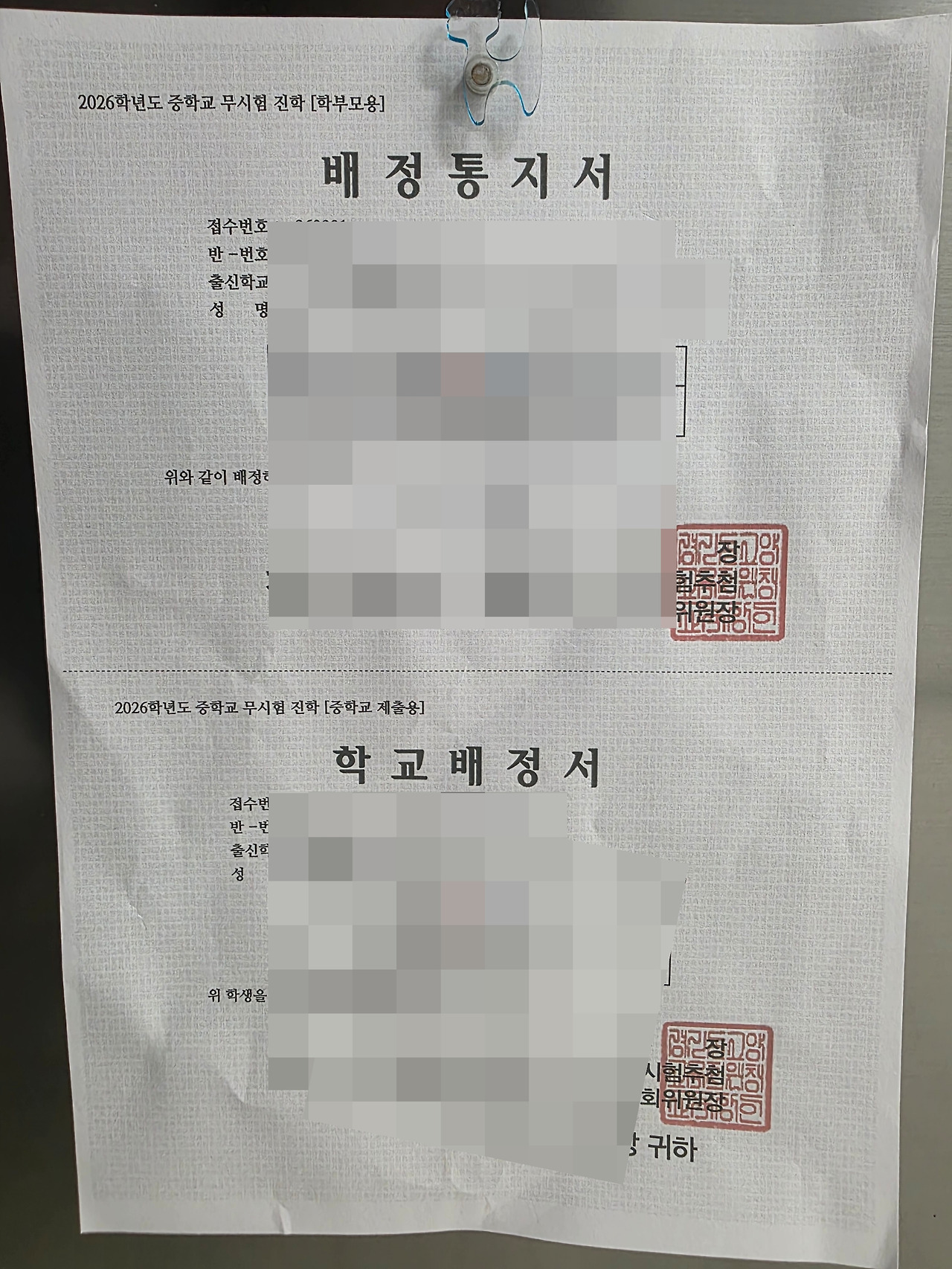 너무 담담한 아이의 목소리에 배정 통지서를 내 눈으로 확인해야 믿을 수 있을 것 같았다. 집에 돌아와 아이에게 건네받은 통지서에 적힌 00중.