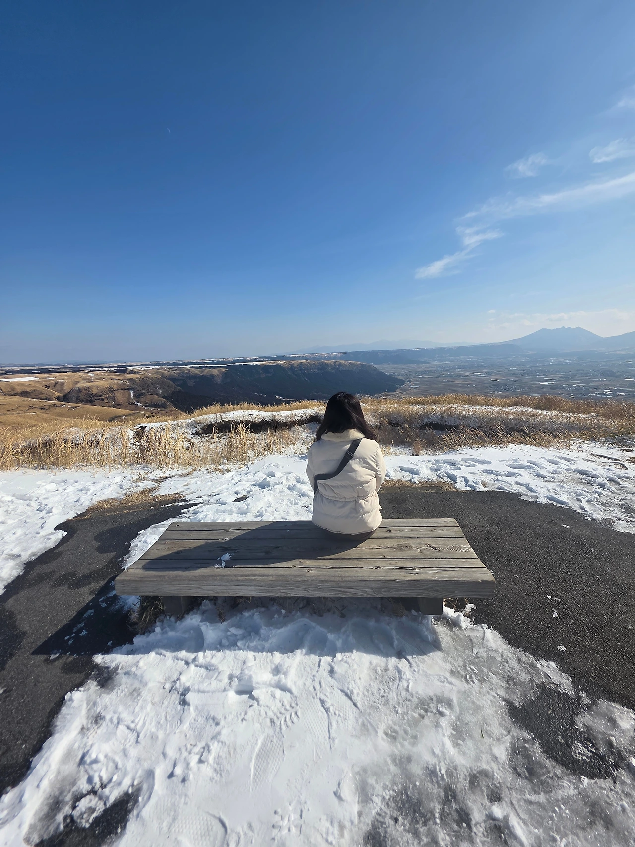 여행 첫날, 다이칸보 전망대에 오르는 길이 온통 빙판길이었다. 여행 와서 눈을 보게 될 줄이야! 해가 뜨니 얼음이 살짝 녹아서 반질반질했다. 한걸음 떼기도 불안 불안한데 그 와중에 미끌거린다며 신이 난 아이들. 빙판길을 뛰어오르고 장난치고 넘어지고 날리였다.