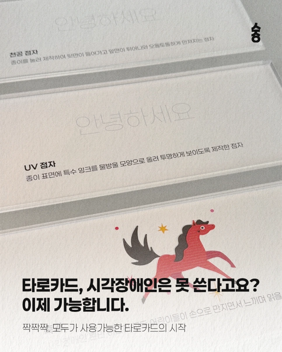 시각장애인과 비장애인이 함께 같은 카드를 만지고