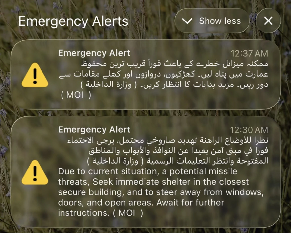 알람 소리가 어찌나 크던지, 동네 주민 중에는 심장이 내려앉는 줄 알았다고 할 정도였다. 사람들은 창문이 없는 화장실, 작은 메이드룸 등 집 안에서 가장 안전해 보이는 공간을 찾기 시작했다. 두바이에서 13년 넘게 살았지만 이런 경험은 처음이라 모든 상황이 비현실적으로 느껴졌다.