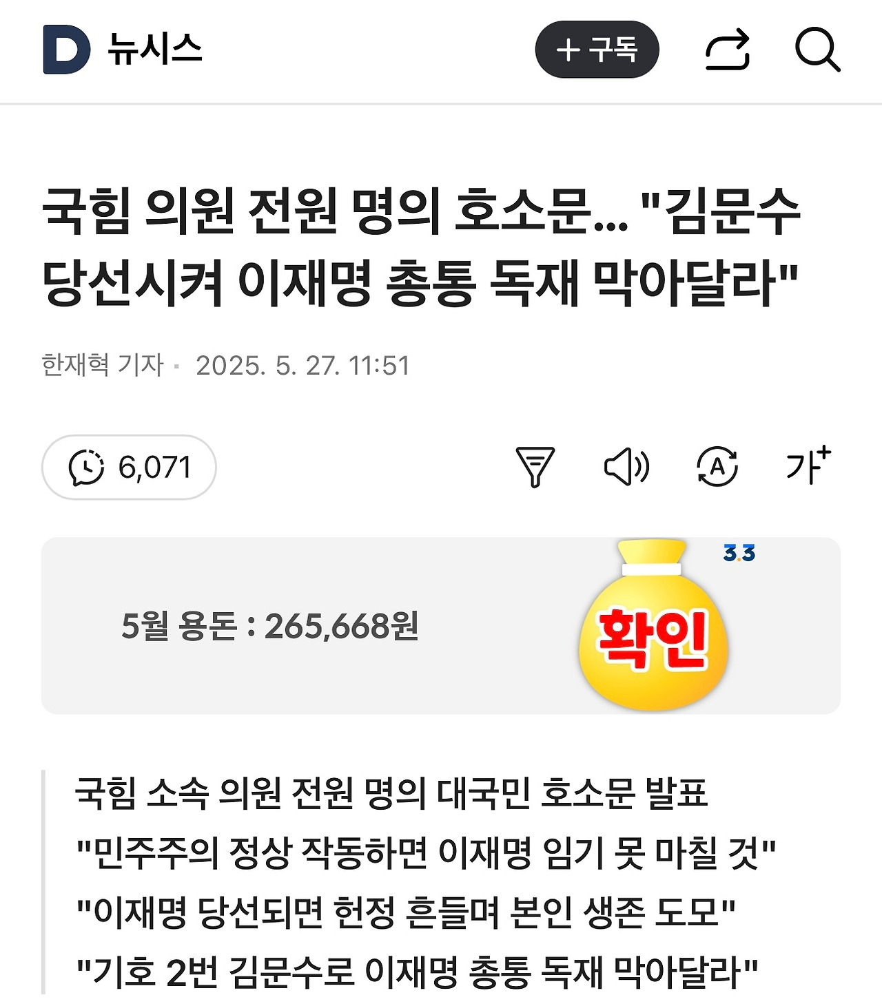 내란 세력과 내란 동조세력이 어떤 자들인지 명확하게 보여줍니다. 이번 대선은 헌정수호연대 대 헌정파괴세력의 대회전이고, 선거 승리 이후 진짜 대한민국은 압도적 대한국민 대 소수 극우 기득권 부패 세력의 또 다른 대회전을 예고하고 있습니다.
