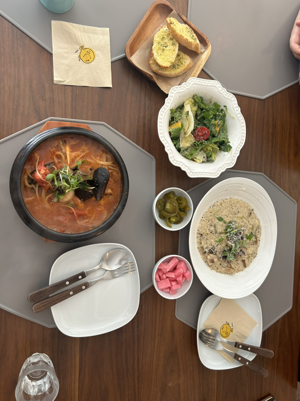 불광동 NC백화점 옆에 위치한 파스타집입니다. 근 30년 이 동네 살았는데 발견하지 못한 곳입니다. 딸과 와이프가 우연히 발견하고, 어떤 맛인지 가보자고 하더군요. 둘에게 말린 거죠. 거부한다고 안 갈 수도 없었고요. 포르치니 버섯크림 리조또, 해산물 토마토 짬뽕 파스타, 제목 기억 안 나는 파스타, 그리고 미니 샐러드로 한 끼를 맛있게 해결했습니다. 리조또는 매우 맛있었고, 어제 먹은 술을 해장하는데 짬뽕 파스타로 너끈했습니다. 파스타도 다른 일반적인 곳에 비하면 맛이 좋았고요. 모두의 만족한 표정에서 음식의 맛은 보증이 되었지요. 마을 곳곳에 정성껏 음식을 만들어 많이 팔아서 부자가 되고 싶은 사장님들이 계십니다. 맛있고 값도 저렴하면 많은 분이 찾겠지요. 애덤 스미스 국부론에 나오는 ‘보이지 않는 손’의 원리기도 합니다. 문제는 대한민국에 자영업자가 너무 많고, 소수의 프렌차이즈가 시장을 과점하고 있는 것입니다. 최선을 다해도 성공할 가능성은 매우 낮지요. TV와 유튜브를 통해 먹방이 유행하고, 외식하세요 하는 프로그램이 넘쳐나지만, 정작 그 혜택을 보는 것은 매우 적습니다. 그 또한 자본의 논리에 휘둘리지요. 문을 닫지 않고 더 긴 시간 손님의 입맛을 책임줘 주면 고맙겠습니다. 우리 가족도 동네에서 가끔 찾을 좋은 식당을 알게 되어서 좋았습니다.