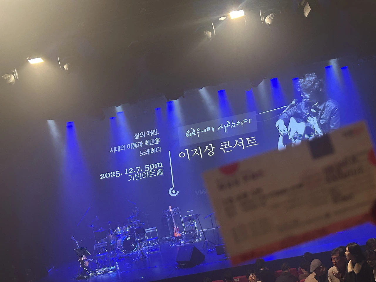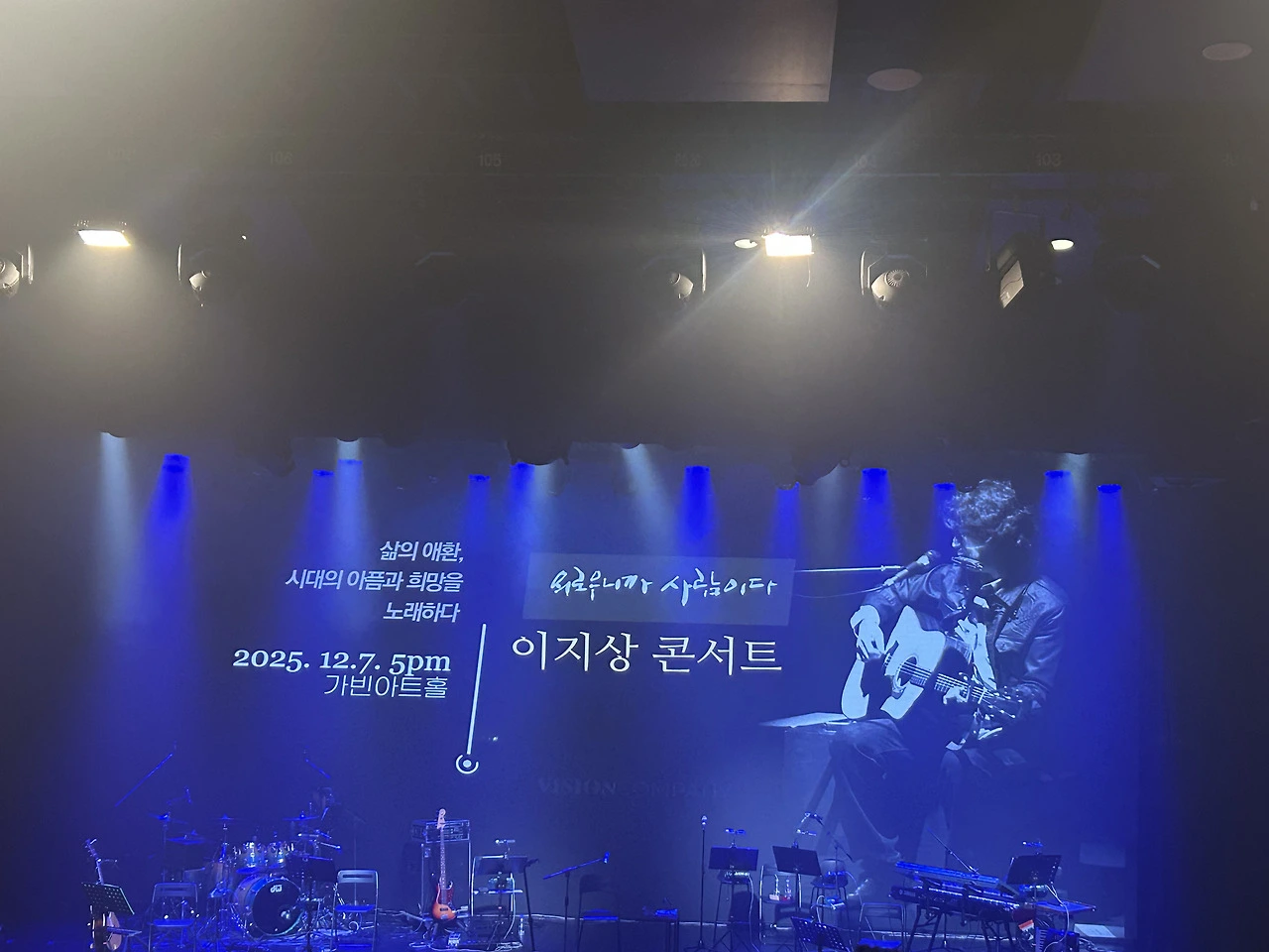 이지상 가수이자 형님의 공연 제목입니다. 8년 만에 다시 올린 단독 콘서트, 오롯이 자신의 노래와 이야기로 2시간을 채운 의미깊은 무대였습니다. 사람에 대한 깊은 이해, 가장 아픈 사람과의 동행, 함께 걷는 평화를 노래로 세상에 수놓는 가수이자 작가이자 교수 이지상…