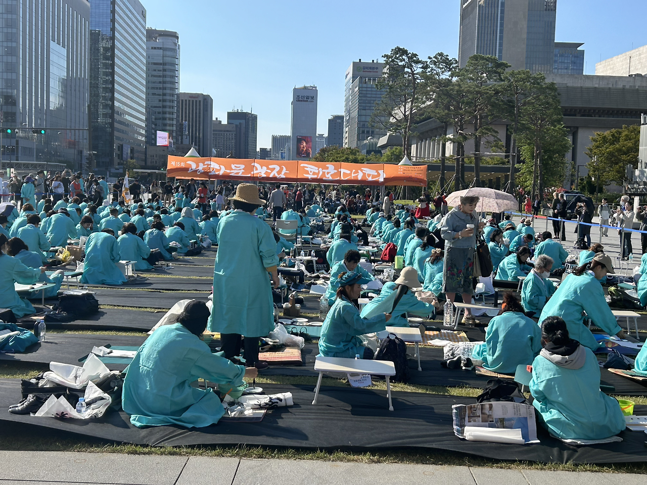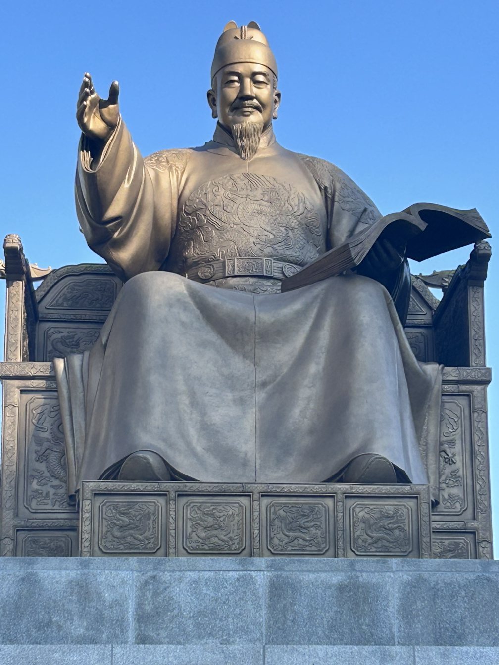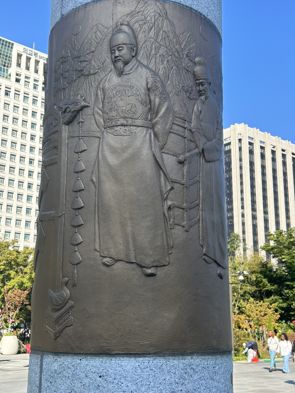 한글날 아침 광화문에 앉아계시는 세종대왕님에게 감사인사를 드렸습니다. 이미 많은 분이 화환으로 축하를 드렸고, 많은 사람들이 저와 함께 감사인사를 하고 있더군요. 이 시대 성군을 기다리는 것은 당연하고, 애민의 상징인 세종대왕이 더 그리운 것은 인지상정일겝니다. 세종대왕 뒤편에 내외국인들이 붓과 벼루로 한글을 적어내려가는 모습은 장관이었습니다. 백성은 도탄에 빠졌는데 주지육림인 권력자와 권력집단을 보며 세종대왕은 무슨 생각을 하셨을까요?!