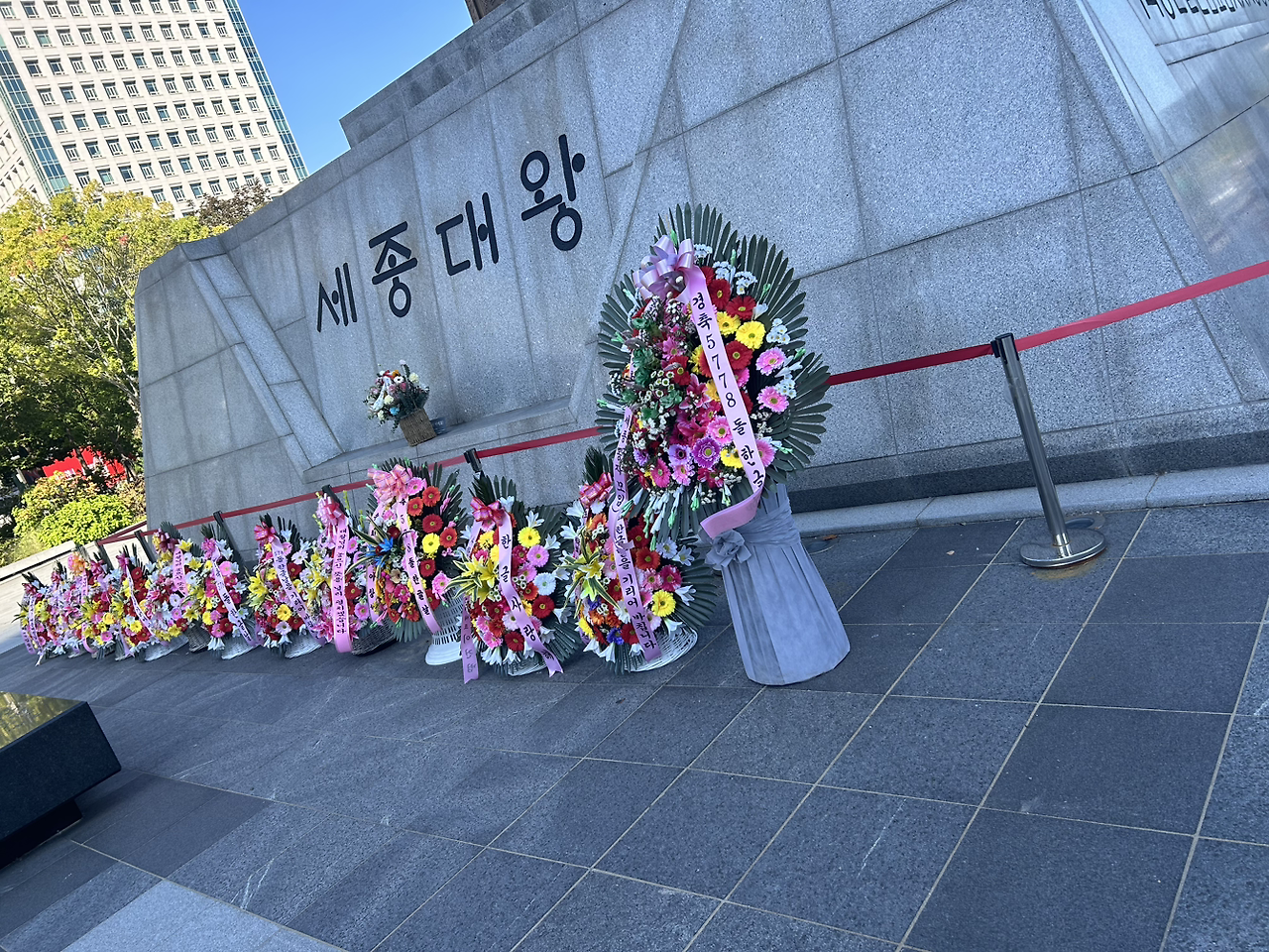 #세종대왕 #한글날 #광화문광장 #휘호 #붓과벼루 #성군과애민 #화환
