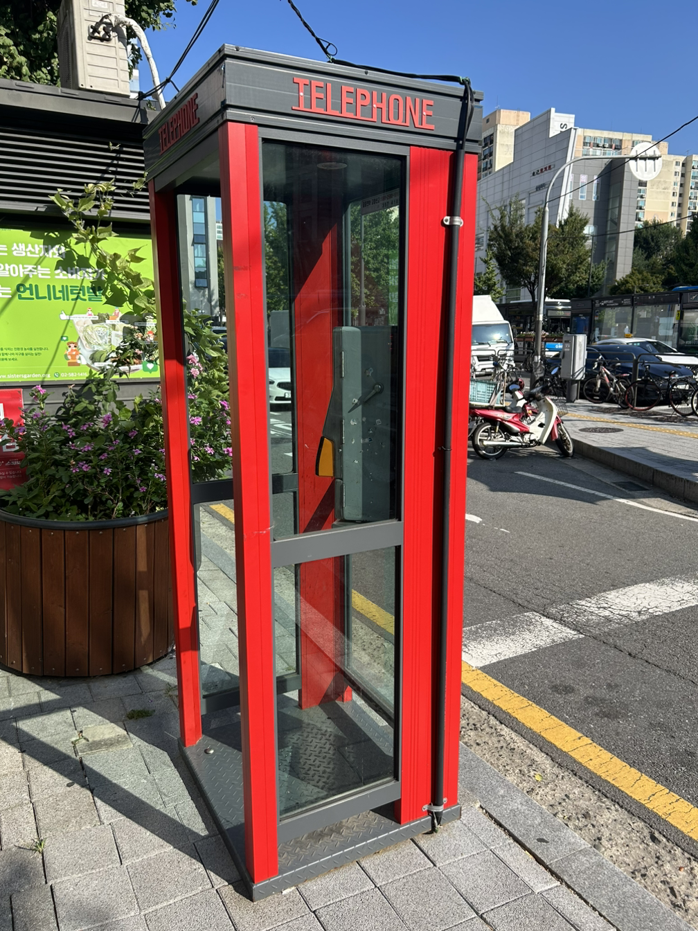 대조동 건널목 길에 새빨간 공중전화 부스가 있습니다. 옛 추억을 추억하게 만들지요. 지금에야 손에 모두 핸드폰을 들고 다니지만, 그때 누구에게 연락하려면 공중전화 부스에 십 원짜리, 오십원 짜리 그리고 백원 짜리 동전을 넣고 전화했지요. 아날로그의 감성을 대표합니다. 온갖 영화의 중요한 스팟이기도 했습니다. ‘영웅본색 2’의 장국영 공중전화 씬, ‘넘버3’ 한석규의 공중전화 씬 등. 도시의 공간이 가끔 이런 아날로그와 함께 어우러지는 디지털이기를 바랍니다. AI까지 현실화하는 세상에서 손으로 만지고 느끼는 촉감은 생명의 생명다움을 이어가는 소중한 가치이기도 하기 때문입니다.