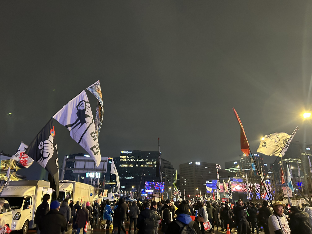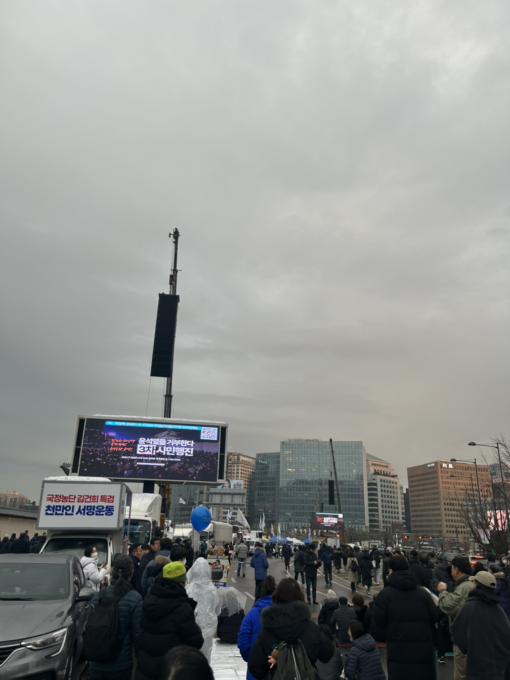 경복궁 광화문 앞 도로 옆에 함께 있던 후배가 한마디 하더군요. “윤석열은 운이 좋은가 봐요. 어떻게 5시부터 7시까지 비가 온다고 예보하고, 비가 와요.” 정말 그 시간에 비가 왔습니다. 지난주에 비하면 조금 적은 분들이 집회에 참여했지요. 그것이 무엇이 문제겠습니까! 세상을 바꾸는 사람의 마음은 출렁이고 움직이는 것이지요. 본질은 변한 것이 없지요. 오늘은 비가 왔고, 다음 주는 춥기도 하고, 그 다음 주는 따뜻할 수도 있지요. 그런데 그 세상을 사는 사람들이 행복하지 않으니까요. 바꿔야죠. 우리는 사랑비가 내리길 바라는데, 그러지 않으니까요. 오늘은 탄핵비가 내린 거죠. 바꿔보라고요. 바꿔야 한다고요. 그렇게 세상이 변하는 것이겠죠. 희망은 차곡차곡 모이고 있습니다. 어느 날 누구는 오고 누구는 못 올 수도 있죠. 마음이 쌓이는 거라 생각합니다. 힘들어도 걱정하지 마세요. 우리가 희망이고, 우리가 미래입니다.