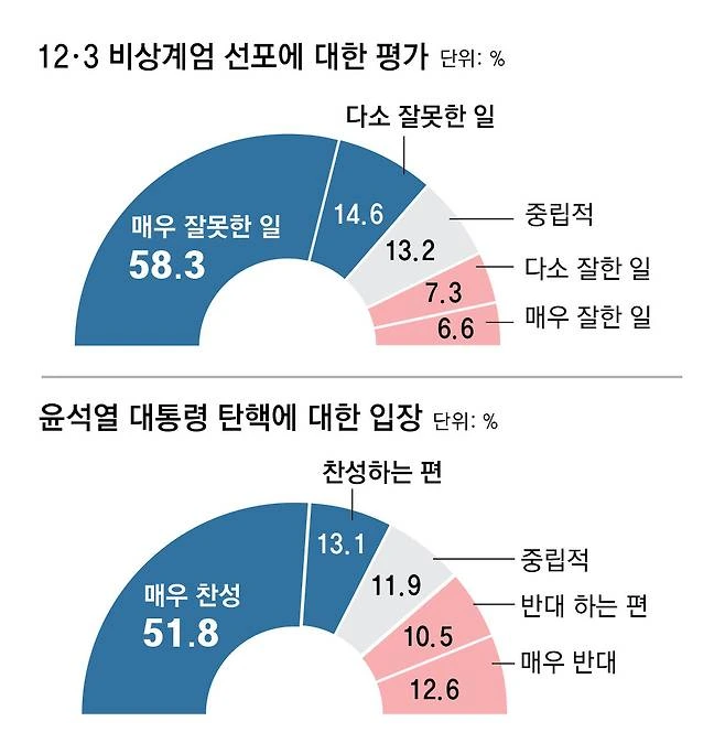 최근 일부 여론조사기관의 발표와 얼마나 큰 차이가 나는지 확인할 수 있습니다. 최근 여론의 흐름을 보면서 제가 판단하는 것은 내란 세력을 응징해야 한다는 민심은 변하지 않았으며, 정권을 교체해야 한다는 여론이 정권을 유지해야 한다는 여론보다 10% 정도 격차로 높다는 것입니다. 그러나 정당 지지율을 통해 민주당도 변해야 한다는 여론도 유의미한 수준이라는 것입니다.