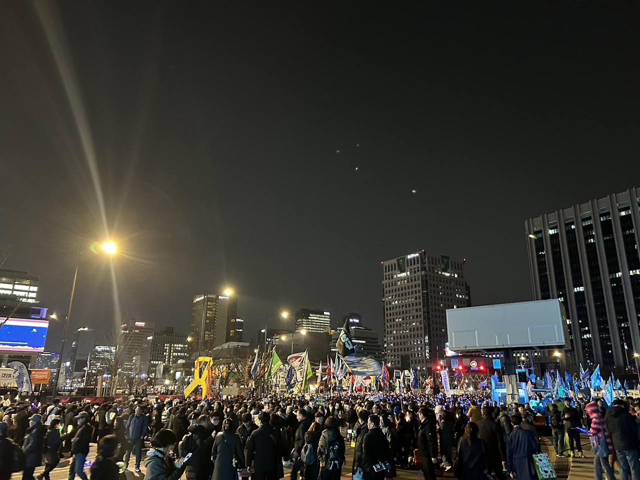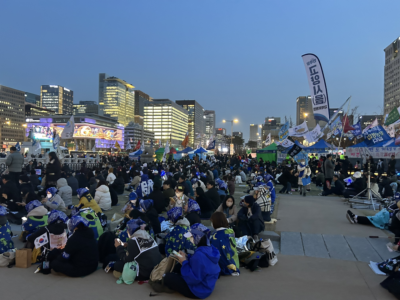 오늘 광화문 동십자각 광장과 도로도 어제와 마찬가지로 사람들로 가득했습니다. 바뀐 것이 없는 하루, 하지만 늦어도 오늘은 헌재가 선고할 것으로 생각했던 마지노선의 그날이어서 사람들의 분노는 더욱 컸던 것 같습니다. 서로를 다독이며 버티자고, 우리가 끝내 승리할 것이라고, 연대의 두 손 놓지 말고 더 큰 우리가 되자고 다짐하는 자리였습니다. 저라고 답답하고 화나고 긴장되지 않겠습니까! 모두의 마음일 겁니다. 그래도 산을 오르면 언제가 내려가는 길이 보입니다. 가장 힘든 시점이 정상에 등극하는 그 직전이지요. 그 직전에 있다고 생각합니다. 내려가는 길에도 잡은 손을 놓지 말아야겠지요. 다음 주 어느 날 내란 수괴가 파면되는 그 어느 날, ‘상쾌환’ 마시고 멋들어지게 술 마시는 날을 고대합니다. 민주주의 승리의 잔칫날