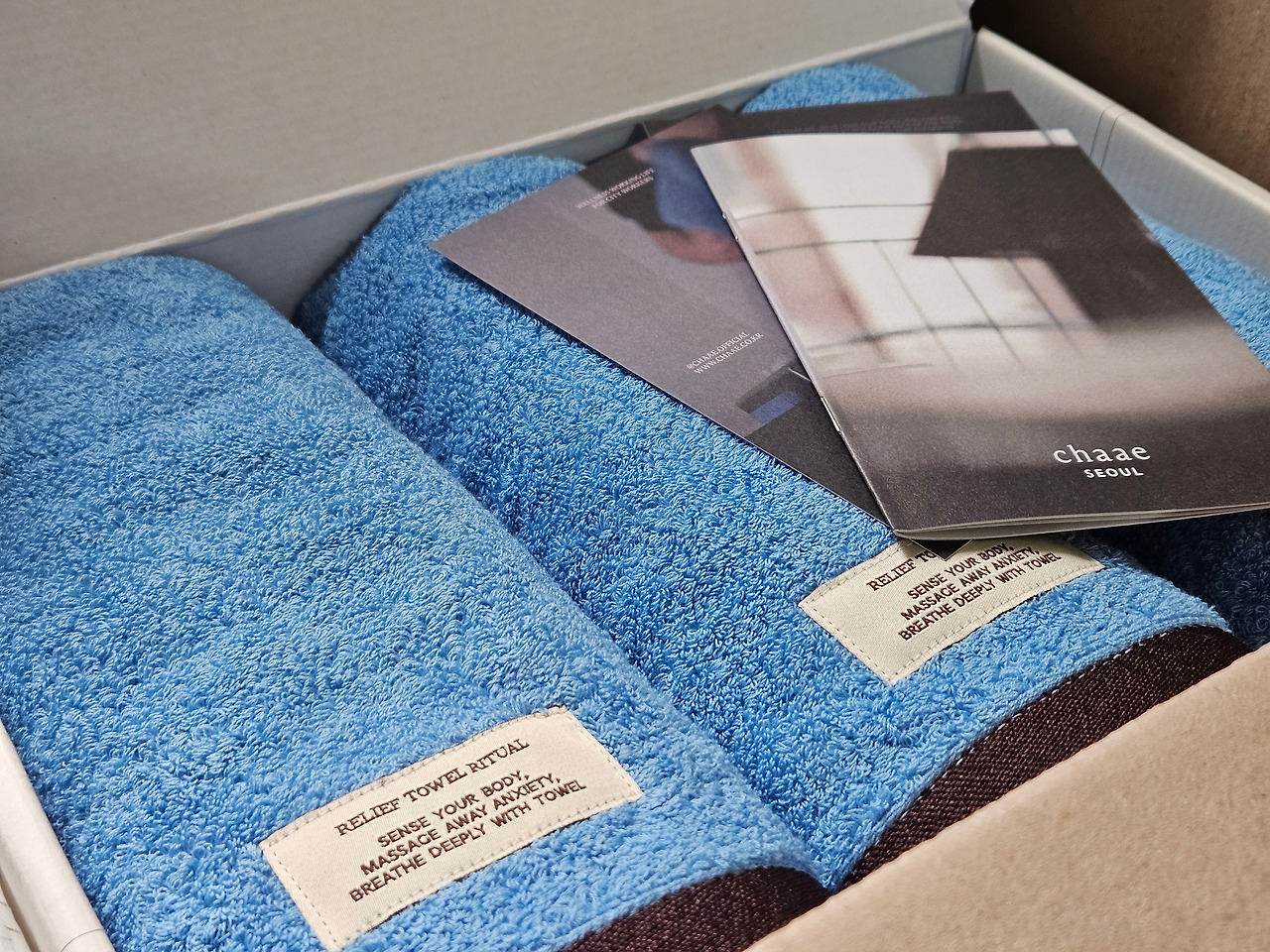 "어머, 나 뭐 안 쓰여 있는 수건 처음 써본다. 너무 예쁘네."