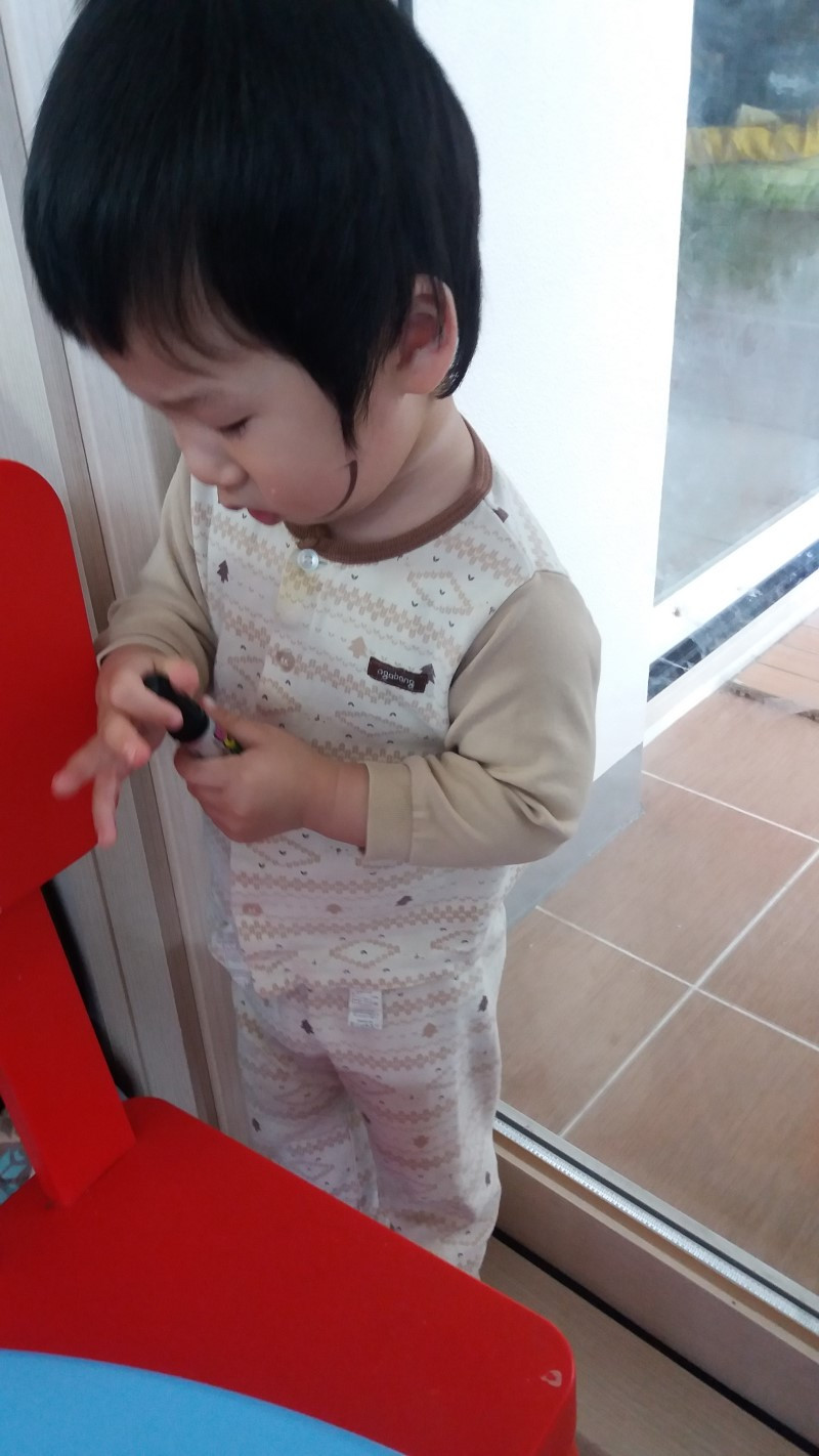 아기가 꼬깔콘을 바닥에 흩뿌리고는 발로 밟고 논다. 매직을 얼굴에 칠하고 다닌다. 며칠전이었으면 한숨부터 나왔을 텐데.