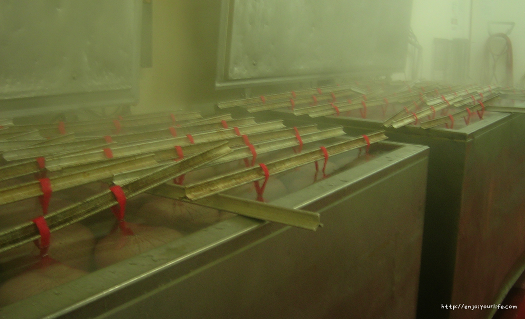 그를 따라 들어간 작업장. 소시지를 만드는 공장이라서 그런지 내부는 냉장실과 냉동실로 구분되어 있었다. 아무것도 모른 채 반팔티를 입고 왔던 나는 추위에 떨면서 일을 배워야 했다. 미겔은 오래전부터 키친 파트에서 일 하고 있던 한국인 '오지 형'에게 나를 인계했고, 나는 오지 형으로부터 일에 관한 여러 가지 이야기를 들을 수 있었다. 오지 형은 돌소냐에서 1년 넘게 일하고 있는, 그 누구보다 신뢰받고 있던 사람이었다.