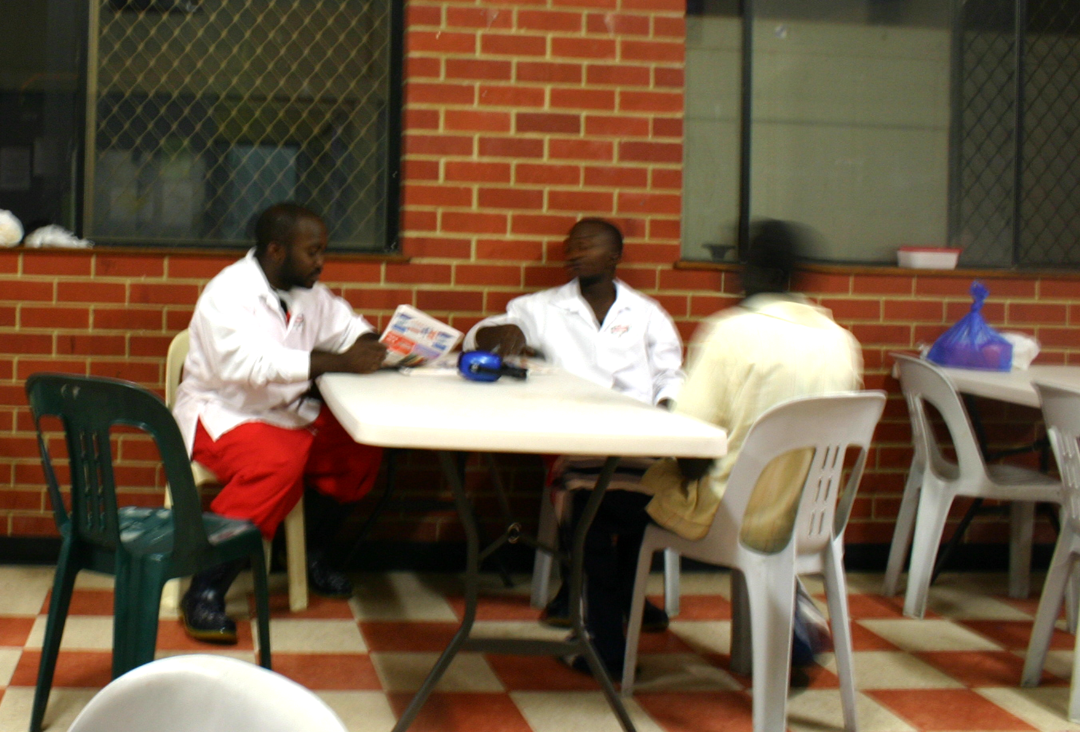 ※ 사진 설명 ※ 콩고에서 온 칸쿠(위/왼쪽), 독일에서 온 미치(위/중간), 수단에서 온 필립(위/오른쪽), 칸쿠의 동생인 콩고출신 자바(아래/왼쪽). 저녁 식사 시간에 휴식을 취하고 있는 칸쿠, 자바, 필립(아래/오른쪽).