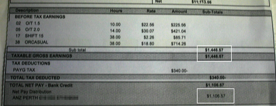 첫 주, 화요일부터 일을 했음에도 불구하고 토요일 아침 통장에 찍힌 돈은 1100달러(AUD)가 넘었다(세금 Tax을 제외한 금액). 나는 계산해 보았다. 어느 정도 일을 더 하면 '여행을 하는 데 필요한 돈이 모일까. 비행기 표값을 포함해서, 남미와 미국까지 여행을 하는 데 필요한 돈이 6-7000달러(USD)라고 생각하고 있던 나에게 공장에서 받는 돈은 엄청난 금액이었다.
